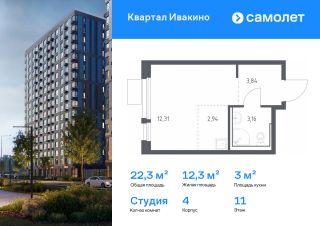 Ипотека 5,9% на два года. Продается квартира-студия. Квартира расположена на 7 этаже 17 этажного монолитного дома (Корпус 3, Секция 5) в ЖК ''Квартал Ивакино'' от группы ''Самолет''. ''Квартал Ивакино'' — уютный жилой комплекс с собственной инфраструктурой в одноименном районе Химок. Проект расположен рядом с рекой Клязьмой и водохранилищем.Школы, детские сады и поликлиника, дворы-парки без машин, магазины и Химкинский лесопарк рядом — ''Квартал Ивакино'' станет прекрасным домом для большой семьи.Квартиры сдаются с готовой отделкой и мебелью - подберите ее на свой вкус и переезжайте в свою новую квартиру. Цена динамическая и может отличаться, уточняйте актуальность у застройщика.