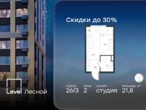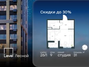 Цена указана с учётом скидки 10%В районе, утопающем в густой зелени лесов, многочисленных парков и скверов, продаётся студия площадью 27.53 кв.м с отделкой white box.. Квартира расположена на 10 этаже в жилом комплексе комфорт-класса Level Лесной (компания Level Group/Левел групп). Отличная транспортная доступность- 25 мин. пешком до станции метро ''Пятницкое шоссе'',- 28 мин. на общественном транспорте до станции метро и МЦД-2 ''Волоколамская'',- 11 мин. на авто до МКАД,- 25 мин. на авто до ТТК.Продуманный архитектурный проект- Концепция проекта Level Лесной от бюро СПИЧ,- Высотность комплекса до 15 этажей с уникальными видами на лесные массивы и город,- Высота потолков до 3 м,- Современные окна высотой до 1,6 м, в части квартир предусмотрены окна в пол. Высота подоконников 0,6 м,- Отделка white box выполняется во всех квартирах.РасположениеLevel Лесной строится в зелёной зоне ближайшего Подмосковья, г.о. Красногорск в посёлке Отрадное. Шаговая и автомобильная доступность до метро и больших транспортных артерий города. За 25 минут вы дойдёте до станции метро ''Пятницкое шоссе'' - одной из самых свободных станций Арбатско-Покровской линии, а за 20 минут на машине сможете доехать до станции метро ''Тушинская''. Район окружен роскошной зеленью лесов и парковых зон, занимающих территорию свыше 1 000 гектаров. Помимо благоприятной экологии, здесь множество возможностей для активного отдыха и поддержания физической формы. Облагороженная территории с полностью развитой инфраструктурой. На территории проекта находится детский сад и школа ''Светлые Горы'', которая входит в список лучших частных школ от Forbes Education (по данным на 2023г.). Кроме того, в пешей доступности расположено ещё 8 детских садов, а также запланировано открытие современной муниципальной школы. В непосредственной близости находятся сетевые супермаркеты и локальные магазины, аптеки, клиники, почта, библиотека, салоны красоты, рестораны, спортивные и творческие секции, развивающие детские центры. В 12 минутах пешком расположен торговый парк ''Отрада'' с продуктовым и строительным гипермаркетами, магазинами, кинотеатром и развлечениями для детей.Внутренняя инфраструктураМы знаем, как важно, чтобы магазины и сервисы были всегда рядом. В сданных корпусах Level Лесной уже расположена полностью готовая развитая инфраструктура. На первых этажах корпуса 27 предусмотрено ещё 14 коммерческих помещений.БлагоустройствоПродуманное пространство и аура приватного европейского городка рождают чувство лёгкости и расслабления у каждого, кто попадает на территорию проекта. Концепцию общественных площадок разработали в партнёрстве два архитектурных бюро: Highlight Architecture и SCAPE. В безопасных дворах без машин каждый обязательно найдёт себе место для вдохновения, отдыха и спорта.Артикул 464