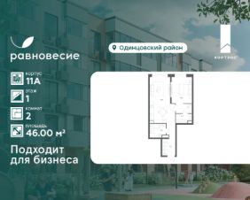 Апартаменты на первом этаже с большими окнами и отдельным входом. Пространство подойдёт для офиса, студии или небольшого семейного дела. Отличный вариант для тех, кто ценит свободу формата и уют.Указанная акционная стоимость доступна при 100% оплате или ипотеке без субсидирования. Цена действует до 31.12.2026 23:59:00. Стоимость без акции 9112400.Продаётся апартамент с 2 комнатами общей площадью 43.60 кв. метров на 1 этаже жилого квартала комфорт-класса ''Равновесие''.На территории комплекса будет возведен детский сад на 360 мест, а на первых этажах жилых домов откроются кафе, магазины и все необходимое для удобства жителей.Локация ''Равновесия'' выделяется среди других пригородных ЖК разнообразием быстрых маршрутов до Москвы. Для автомобилистов преимуществом станут удобные выезды на Можайское шоссе, Рублёво-Успенское шоссе, Минское шоссе с платной трассой и другие. Также в пешей доступности находятся две ж/д станции — ''Жаворонки'' и ''Здравница''. Дорога на электропоезде до делового центра ''Москва-Сити'' составит всего 35 минут.Особенности ЖК:- Малоэтажная застройка: 4-6 этажей,- Благоустроенный пешеходный бульвар,- Пространства для отдыха и спорта,- Квартиры с террасами на последних этажах,- Квартиры с отдельным входом на первых этажах,- Внутренняя территория квартала свободна от машин,- Безбарьерная среда,- Помещения для хранения детских колясок и спортивного инвентаря.