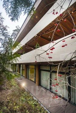 ID 26458 КристинаОписание дома: На продажу предлагается дом 2 000 кв.м. на лесном участке. Вилла выполнена в стиле модерн. Входная группа входные двери высотой около 4 м со скульптурными бронзовыми ручками. Зал с высокими потолками (3,9 м) украшен авторскими скульптурами и мебелью, изготовленной на заказ. Пространство построено в теплом и неподвластном времени органичном современном стиле.Благодаря раздвижным панорамным окнам с уникальными механизмами гостиная образует единую зону с террасой и позволяет слиться с природой. Большие обустроенные террасы и круглогодичная эксплуатируемая кровля. Планировкой предусмотрено 4 спальни (можно увеличить до 6) со своими ванными комнатами и гардеробными, просторный кабинет, гостиная с панорамным видом и выходом на террасу, столовая с камином. На нижнем этаже Spa-центр с бассейном длиной 22,5 м , сауна, хаммам, зона отдыха с выходом на участок. Подземный гараж на 5 м/м, зона персонала и охраны. Описание участка: Лесной участок 35 соток с вековыми соснами и естественным рельефом. Максимальное сохранение природной среды и интеграция элементов благоустройства в существующий ландшафт.