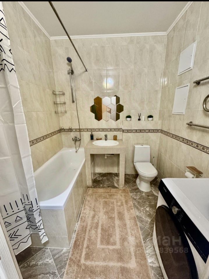 Собственник сдает уютную квартиру для комфортного проживания семьи из 2 человек или одного. В квартире кухня объединена с гостиной. Вторая комната это изолированная спальня. В квартире просторный санузел с ванной и стиральной машиной. Установлена необходимая мебель и бытовая техника для комфортного проживания, в том числе: холодильник, стиральная машина, СВЧ-печь, стеклокерамическая варочная панель, духовой шкаф. Укомплектован необходимой посудой. Имеется ЖК телевизор и аккумуляторный пылесос. В шаговой доступности магазины: Перекресток, Магнит и другие. Имеется фитнес клуб, аптека.