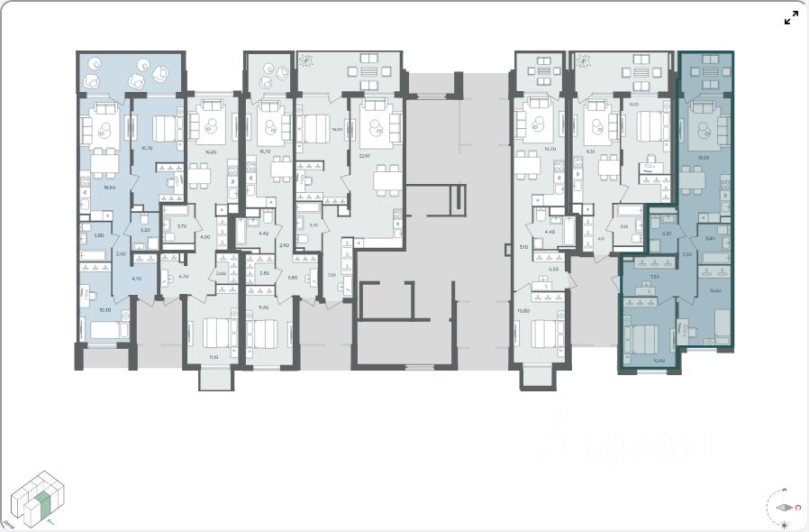 Продаётся апартамент с 2 комнатами общей площадью 44.30 кв. метров на 1 этаже жилого квартала комфорт-класса ''Равновесие''.