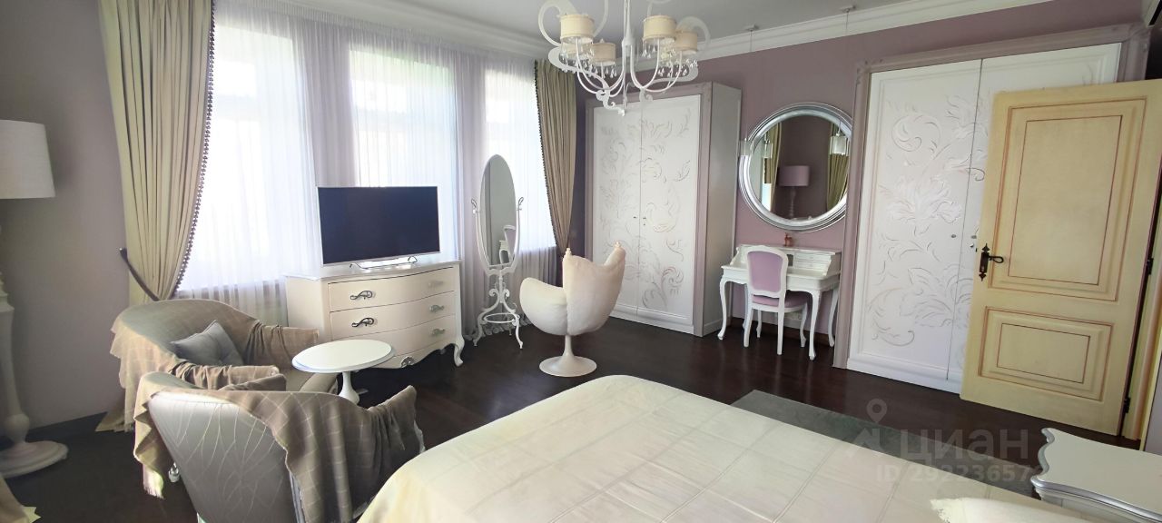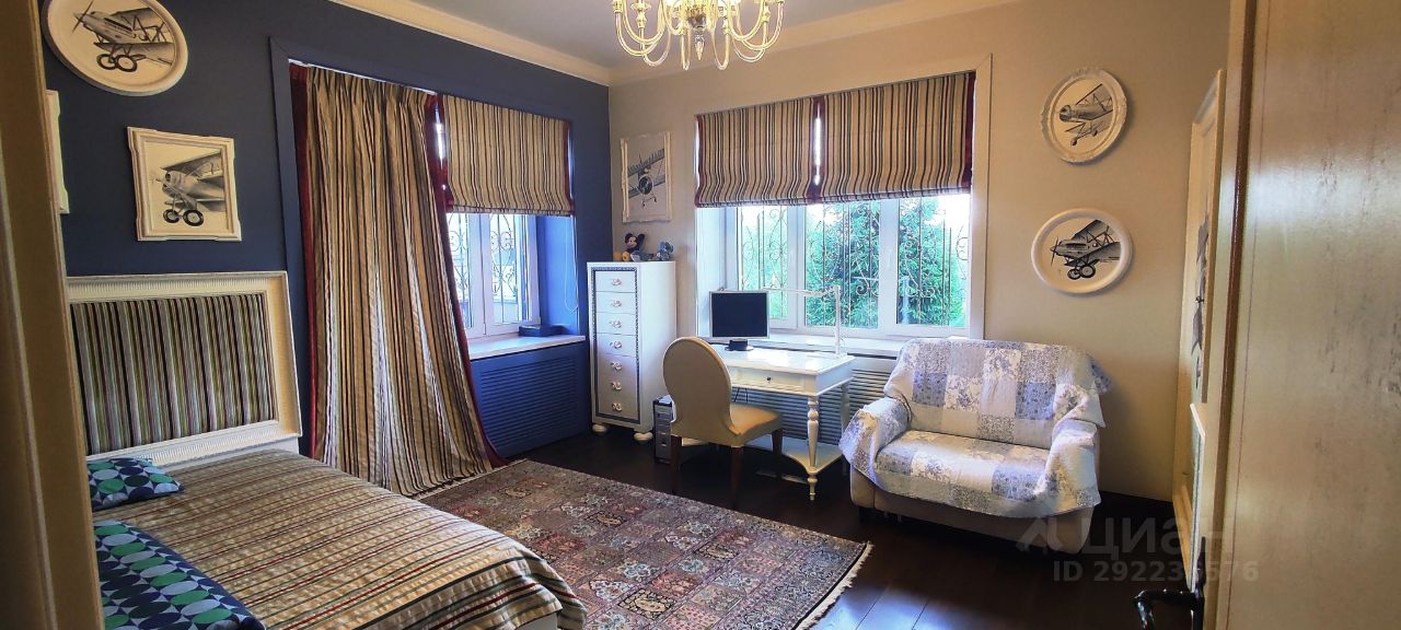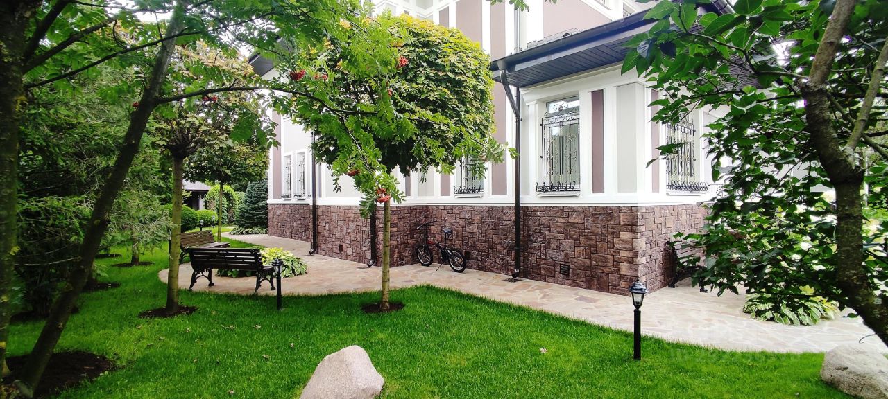 Продается загородный дом премиум класса в коттеджном поселке Покровский по Новорижскому шоссе. Поселок охраняемый, строгая пропускная система. Поблизости расположены школы, фитнес клубы, рестораны, салоны красоты, Участок 13 соток по периметру закрыт от чужих взоров густой зеленью туй. Выполнен ландшафтный дизайн. Дом утопает в зелени селекционных деревьев и растений. На участке находятся: - Особняк 310 м2. - Двухэтажный дом 134 м2 с сауной, хамам, стильной комнатой отдыха на первом этаже и гостевой квартирой с отдельным входом на втором этаже. - Беседка с зоной барбекю и кухонной зоной. Планировка основного дома: Первый этаж: Прихожая с входной дверью из пуленепробиваемого стекла. Холл. Большая гостиная с камином. Кухня. Столовая. Кабинет. Санузел. Бойлерная комната. Гараж на 2 авто. Второй этаж: Мастер-спальня с санузлом и гардеробной. Санузел. Спальня с балконом (балкон с теплым полом). Спальня. Ремонт производился с использованием премиальных и натуральных материалов. Высококачественная сантехника и бытовая техника. Итальянская мебель. В пешей доступности на территории коттеджного поселка находится пруд с пляжной зоной и парк. В непосредственной близости проходит скоростная магистраль: Новорижское шоссе.