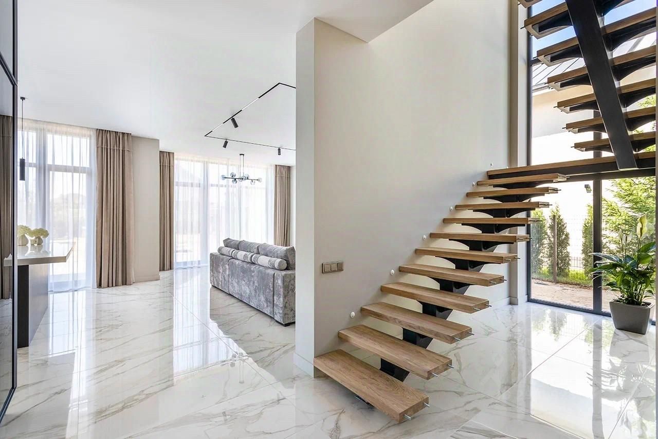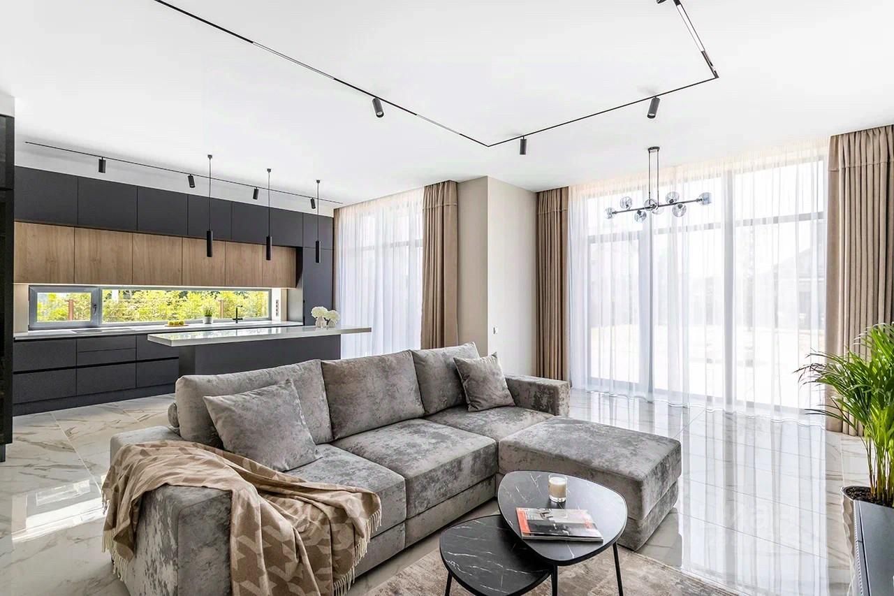 Четыре из них со своим санузлами и гардеробными. Большая кухня-гостиная с выходом на террасу.