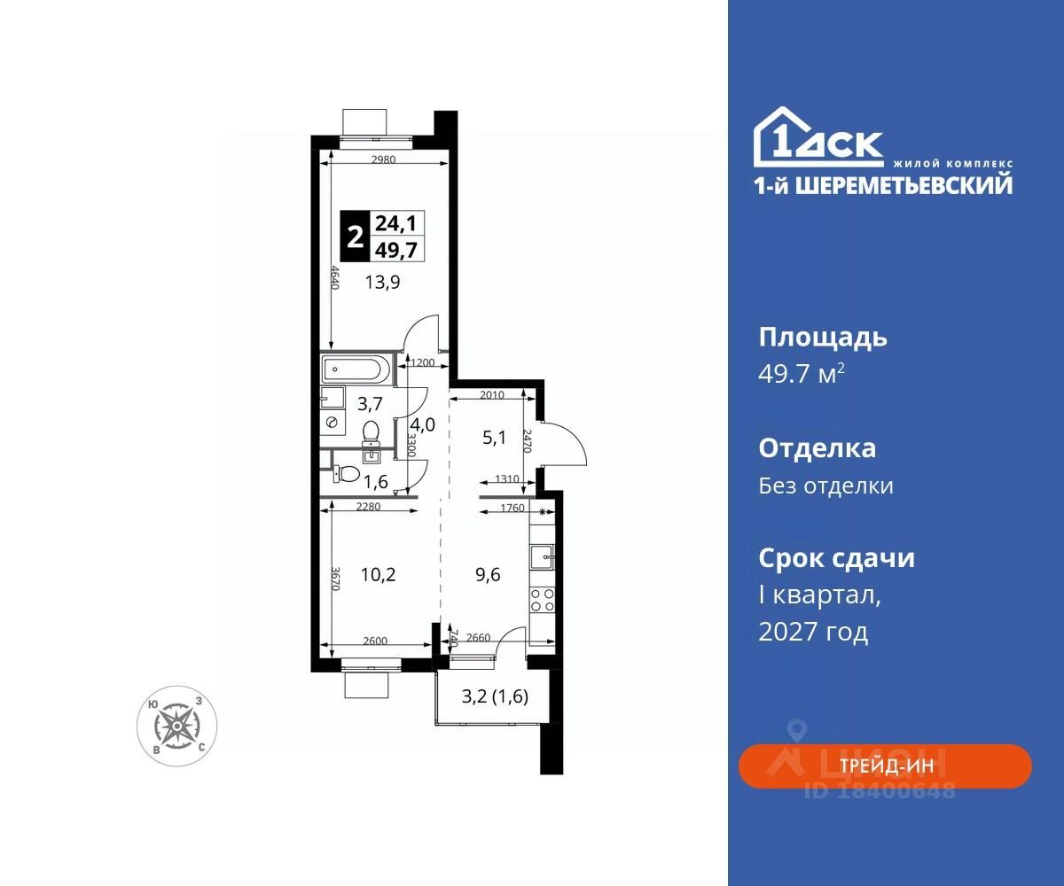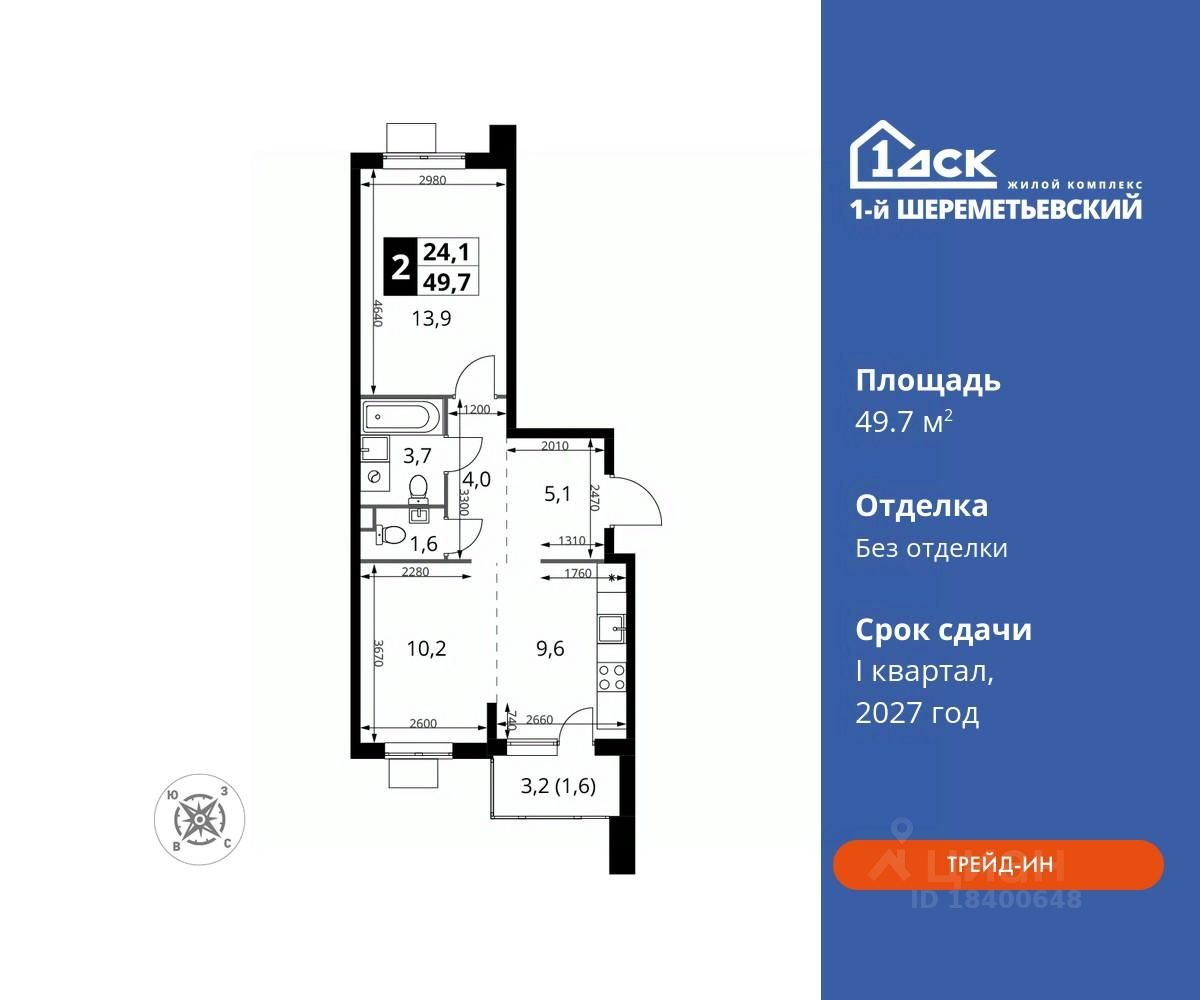 Общая площадь49,7 м2