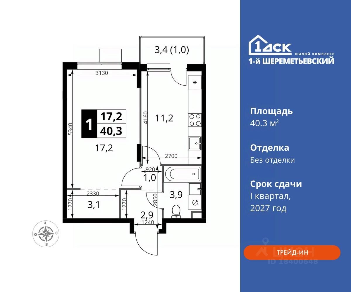 Общая площадь40,3 м2