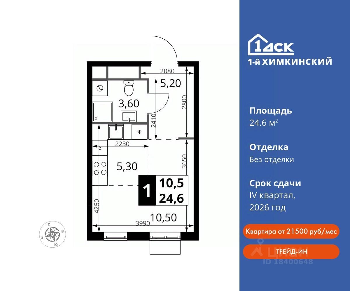 Семейная ипотека без наценки со скидками до 21% до конца августа! Прямая продажа от застройщика! Жилой Комплекс класса Комфорт. Продаётся студия номер 4 общей площадью 24.6 кв.м на 2-м этаже 17 этажного дома. Без отделки.