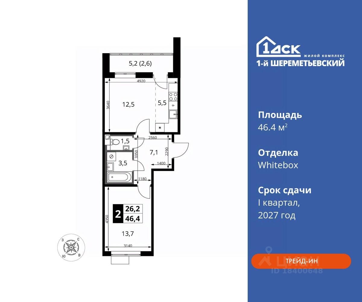 Общая площадь46,4 м2
