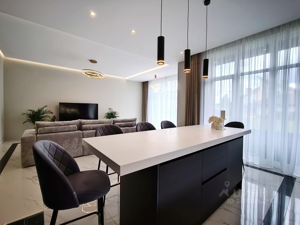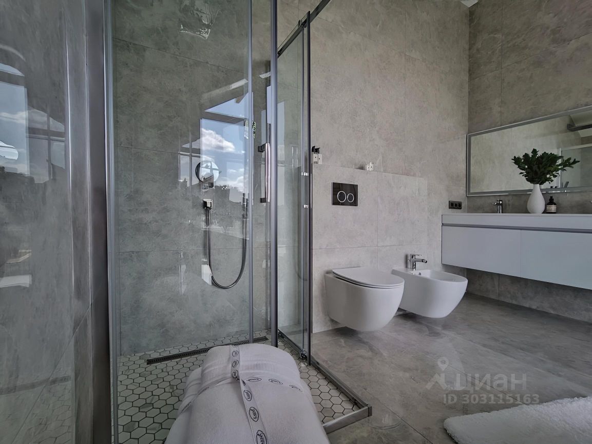 Состав помещений: 1-й этаж: гостиная-кухня-столовая, кабинет или гостевая спальня, с/у, гардеробная, прачечная, спа-зона с сауной. 2-й этаж: мастер-спальня с с/у и гардеробной, 2 спальни со своими персональными с/у. Просторные террасы на первом и втором этаже. Навес на 2 авто.