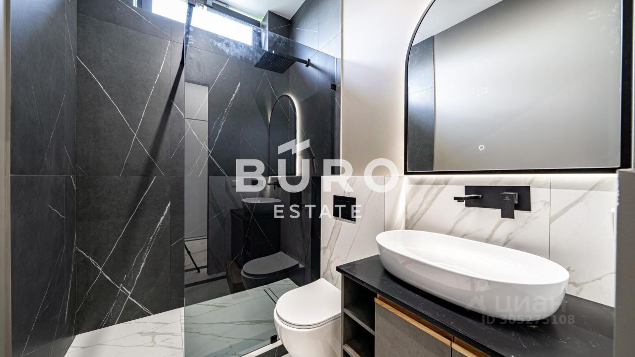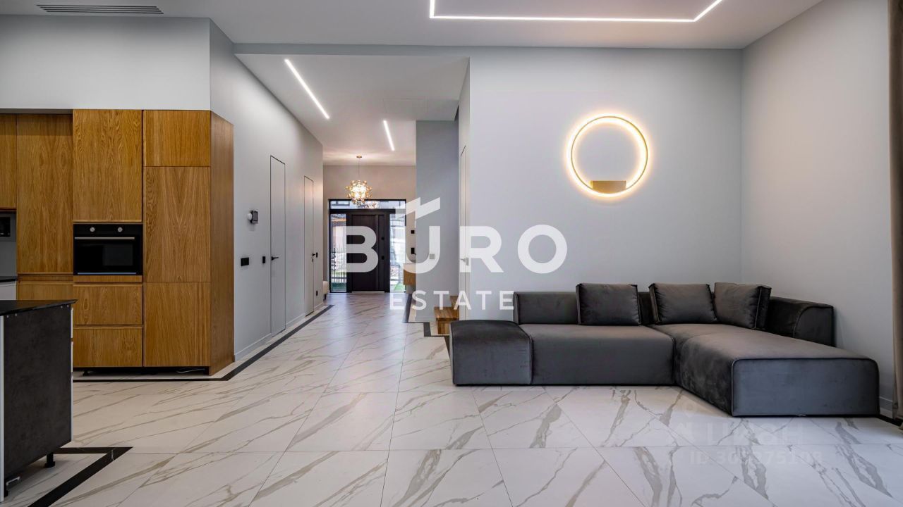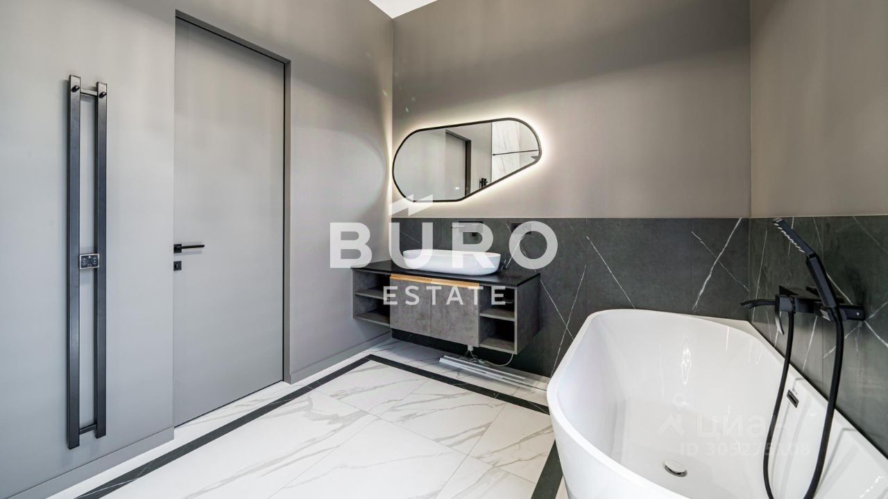 Установлены дизайнерские светильники и скрытые двери, теплые полы и кондиционеры. На кухне немецкая техника NEFF и каменная столешница.