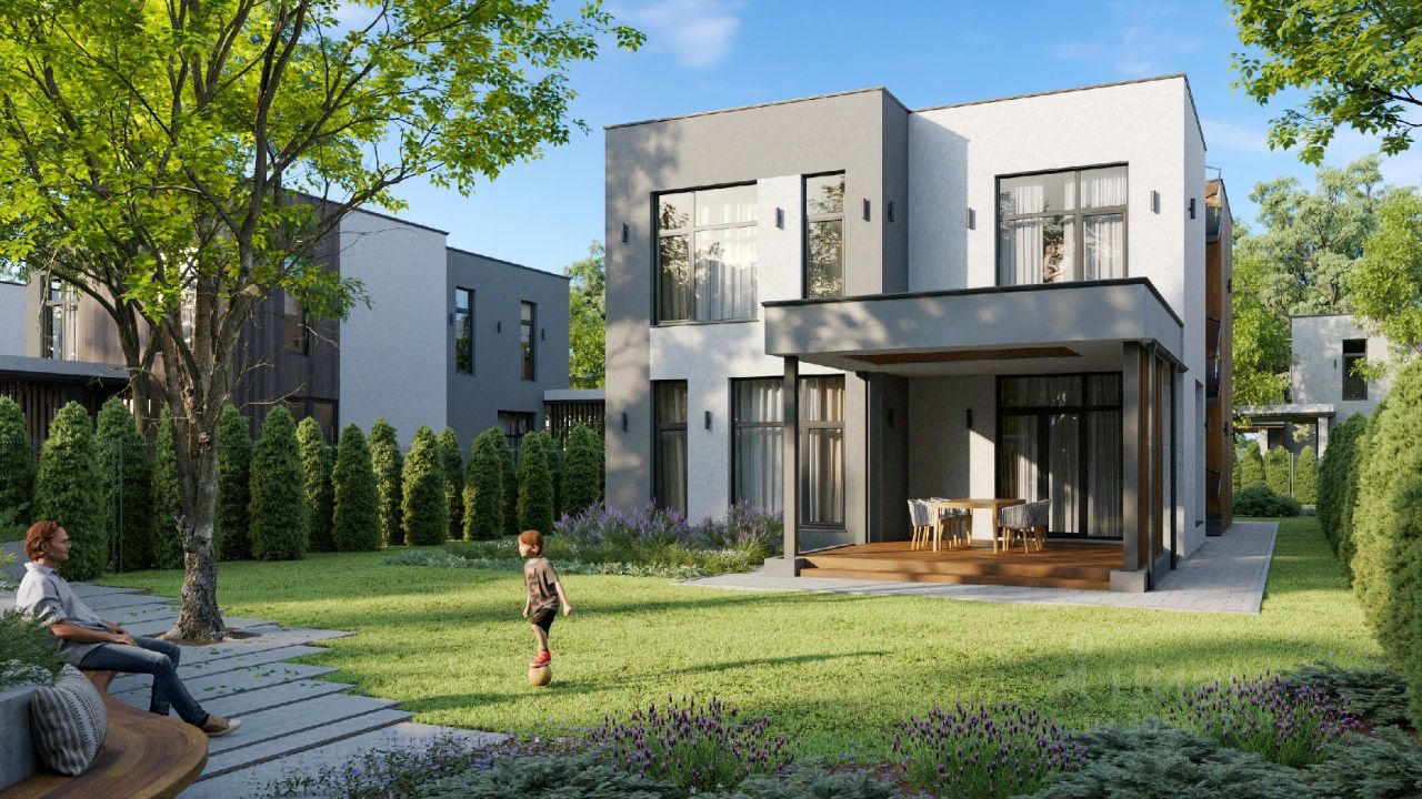 Двухэтажный коттедж в закрытом КП Новое Бакеево Современный квартал. Это уединенное место среди леса в 3 км от Зеленограда. Вдоль посёлка протекает река, на протяжении которой обустроена прогулочная зона, детские и спортивные площадки. В инфраструктуру входит: магазин, кафе, фитнес-клуб, детский сад, бесплатный транспорт до Зеленограда. Материалы строительства: Каркас: монолит Стены: кирпич Утеплитель: минеральная вата Отделка фасада: вентилируемый фасад из hpl мокрый фасад Лестница с 1 на 2 этаж железобетонная внутри дома и винтовая снаружи. Крыша: плоская эксплуатируемая кровля Потолки 3,2 м Коммуникации: газ, вода, электричество, канализация Год постройки: 2024 Закрытая охраняемая территория, КПП и видеонаблюдение. Планировка: 1 этаж: кухня-столовая, гостиная, бойлерная-прачечная, гостевой санузел, гардеробная, кладовая, спальня и кабинет, из которого также можно сделать спальню. 2 этаж: мастер-спальня и 3 детских комнаты, 3 ванных комнаты, 2 гардеробных и холл 3 этаж: эксплуатиру ..., 27 фото