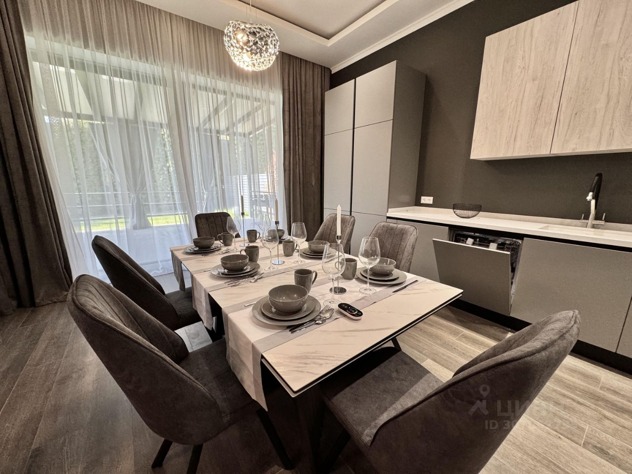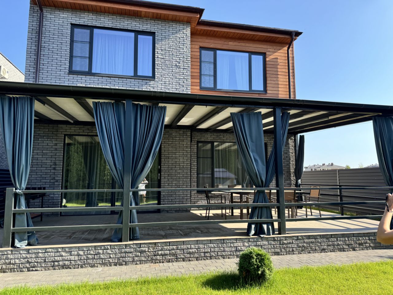 1 этаж холл, кухня-гостиная, с/у, котельная, гостевая спальня, большая гардеробная, постирочная, большая терраса.