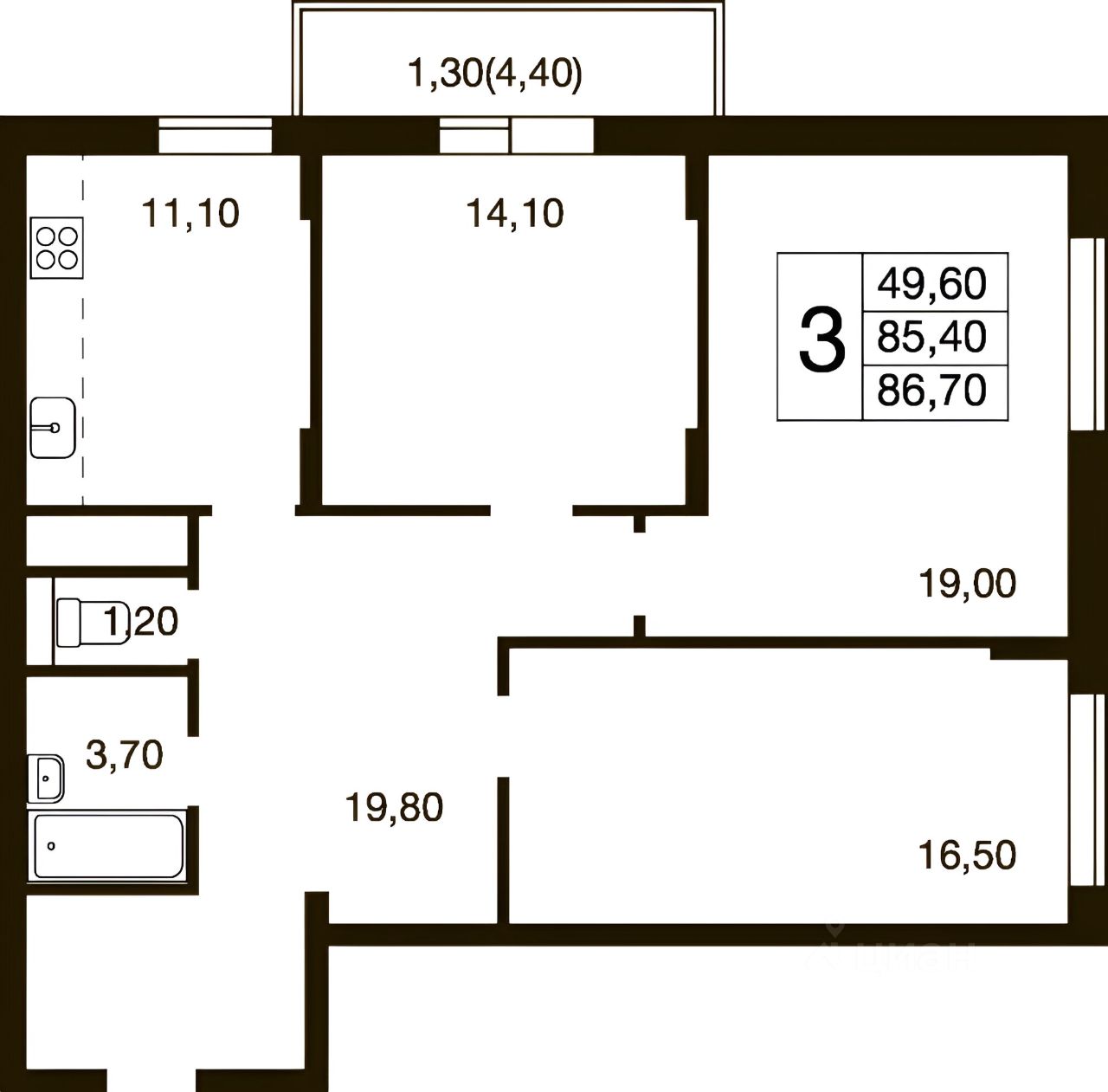 Просторная 3х комнатная квартира с изолированными комнатами и большой кухней.