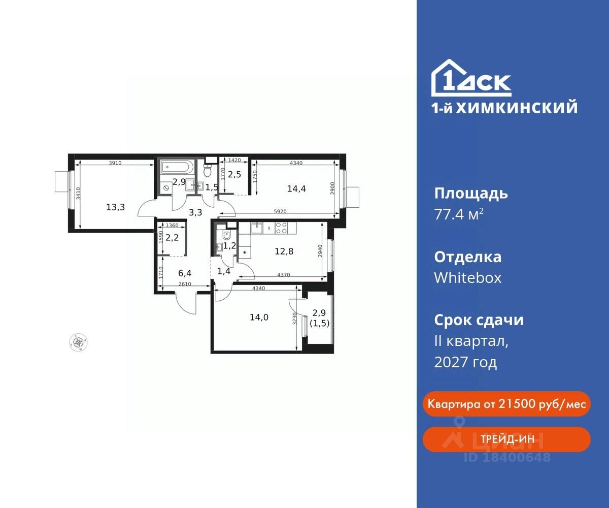 Общая площадь77,4 м2