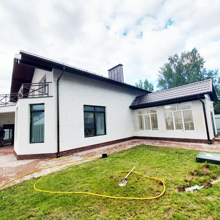 Дом в два этажа построен по индивидуальному проекту из пенобетонных блоков, утеплен и оштукатурен современными материалами толщина стен 400 мм, перекрытия монолит, двухскатная крыша металлочерепица с водосточной системой, утепленная с паро- ветрозащитными мембранами, фундамент бетонная плита с двойным армированием. Для внутренней отделки применялись импортные материалы: акриловые и водоэмульсионные краски, обои, керамогранит, кафель, установлены пластиковые окна. По дому разведены, установлены и работают все инженерные коммуникации - горячее и холодное водоснабжение, электричество 30 кВт, система отопления - газовый котел. Водоснабжение обеспечивается скважиной глубиной 40 м, установлена система фильтрации. На каждом этаже отдельный санузел, на 2-м обустроена сауна. К дому пристроен гараж.