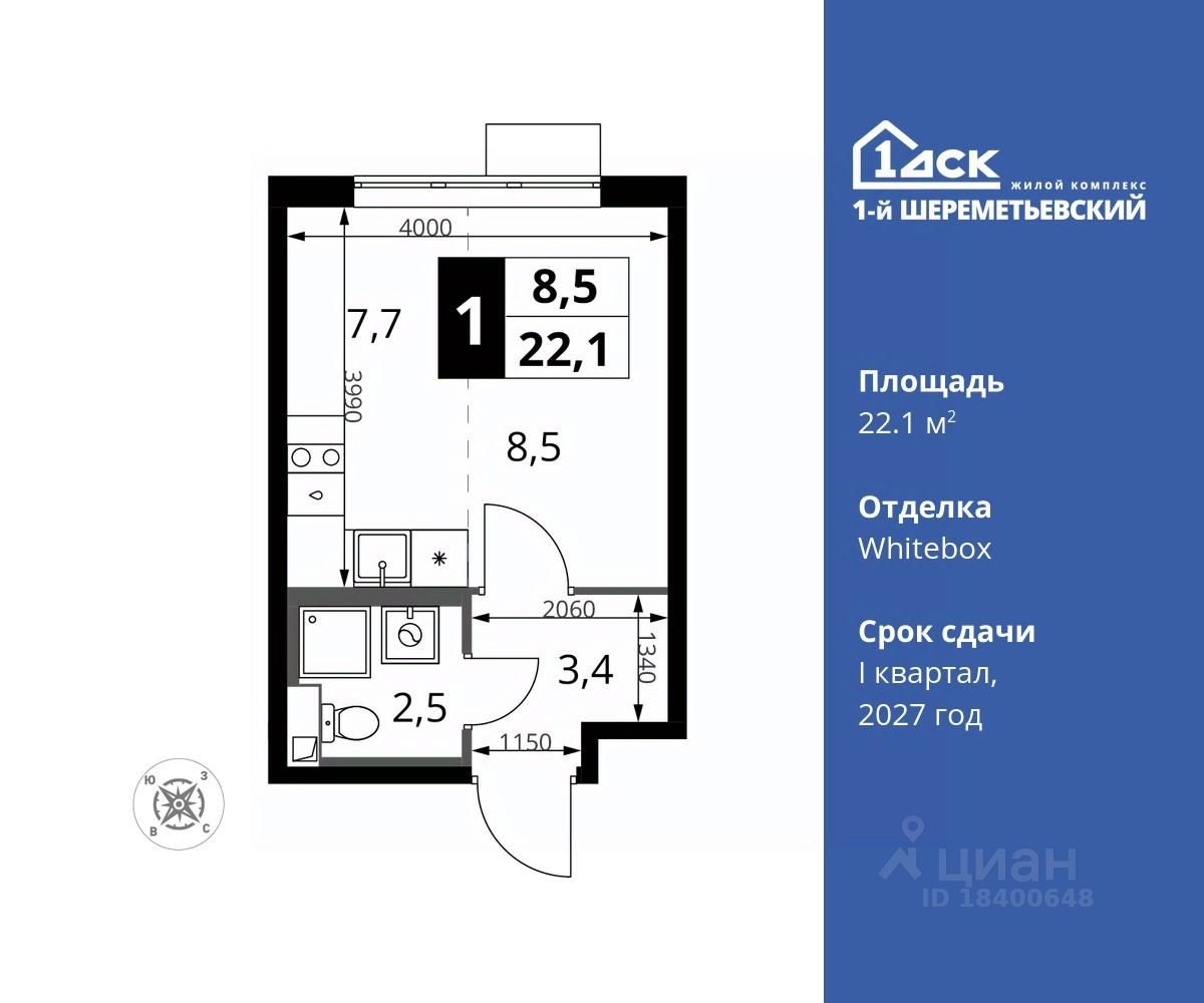 Общая площадь22,1 м2