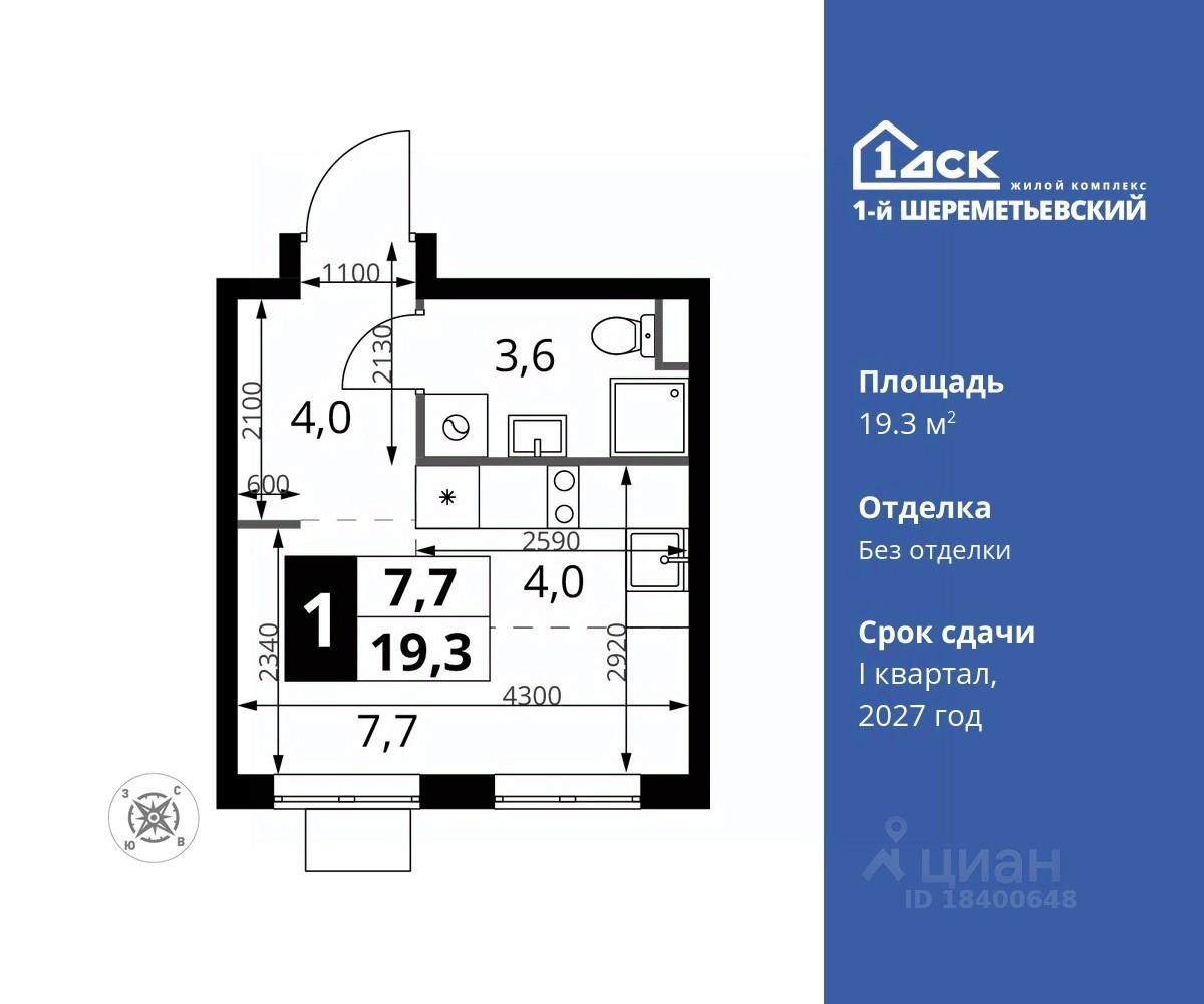 Максимальные скидки при 100% оплате. Прямая продажа от застройщика! Жилой Комплекс класса Комфорт плюс. Продаётся студия номер 1082 общей площадью 19.3 кв.м на 12-м этаже 17 этажного дома. Без отделки.
