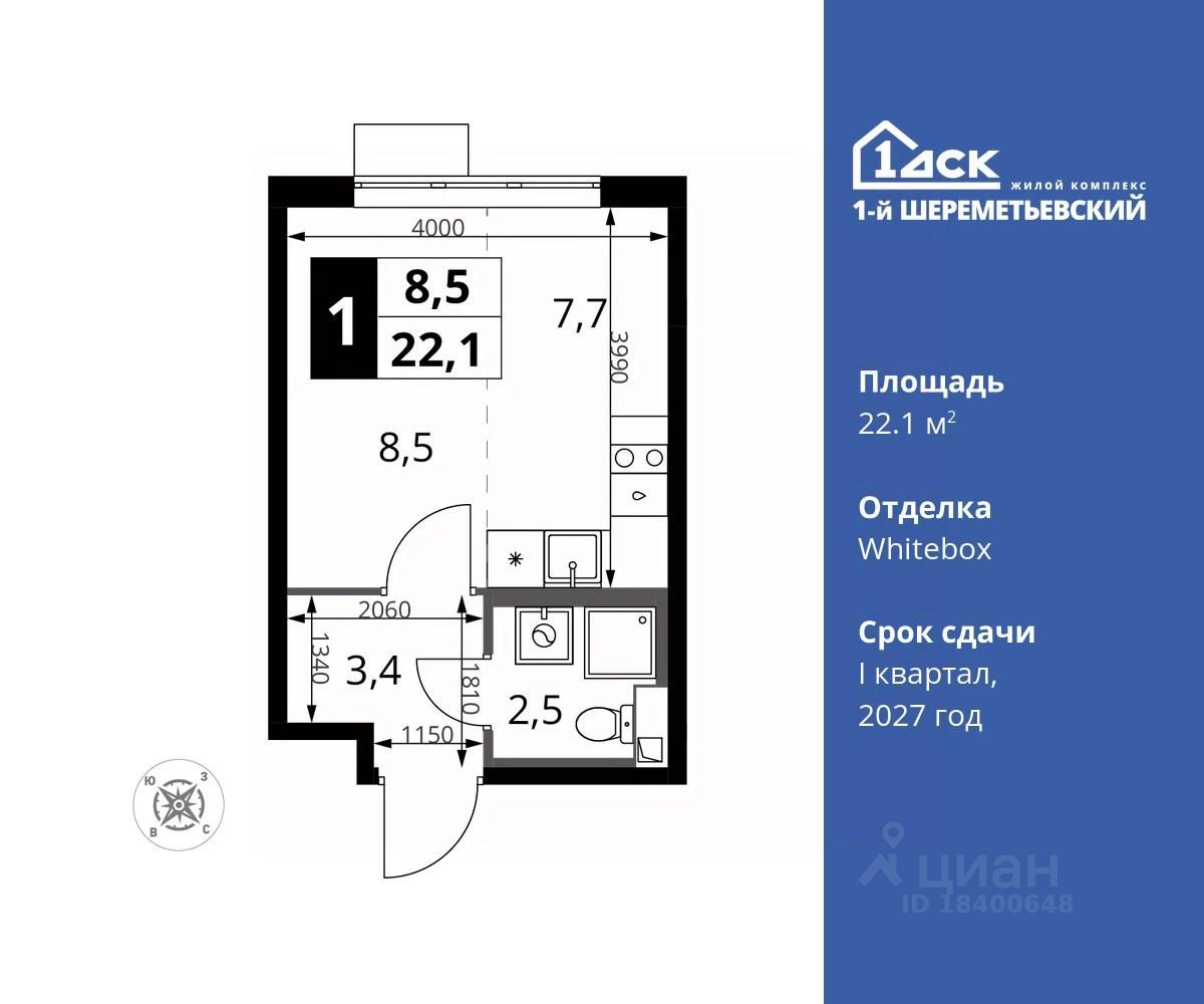 Общая площадь22,1 м2