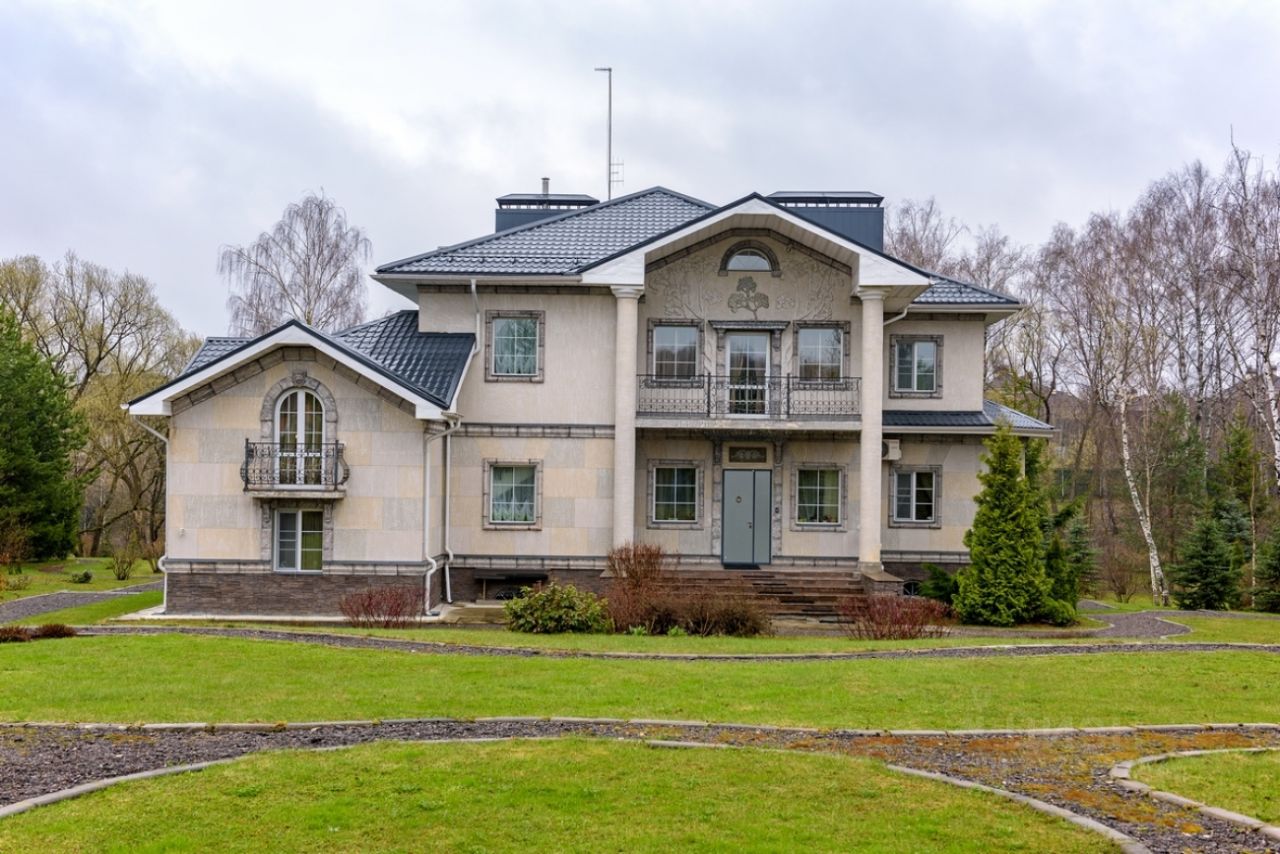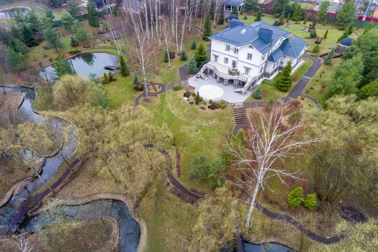Лот 53213. Дом под ключ 560 кв.м. на участке 200.00 соток. Количество спален: 6. Лапино, Рублево-Успенское шоссе, 19 км от МКАД. На участке дополнительно расположен дом для персонала, парковка на 3 автомобиля и место для квадроцикла или снегохода. Гараж для монотехники, генератор. Две ротонды, беседка BBQ. Цоколь: котельная, холодная комната, бассейн, сауна, с/узел с душевой, комната отдыха, тренажерный зал, постирочная.