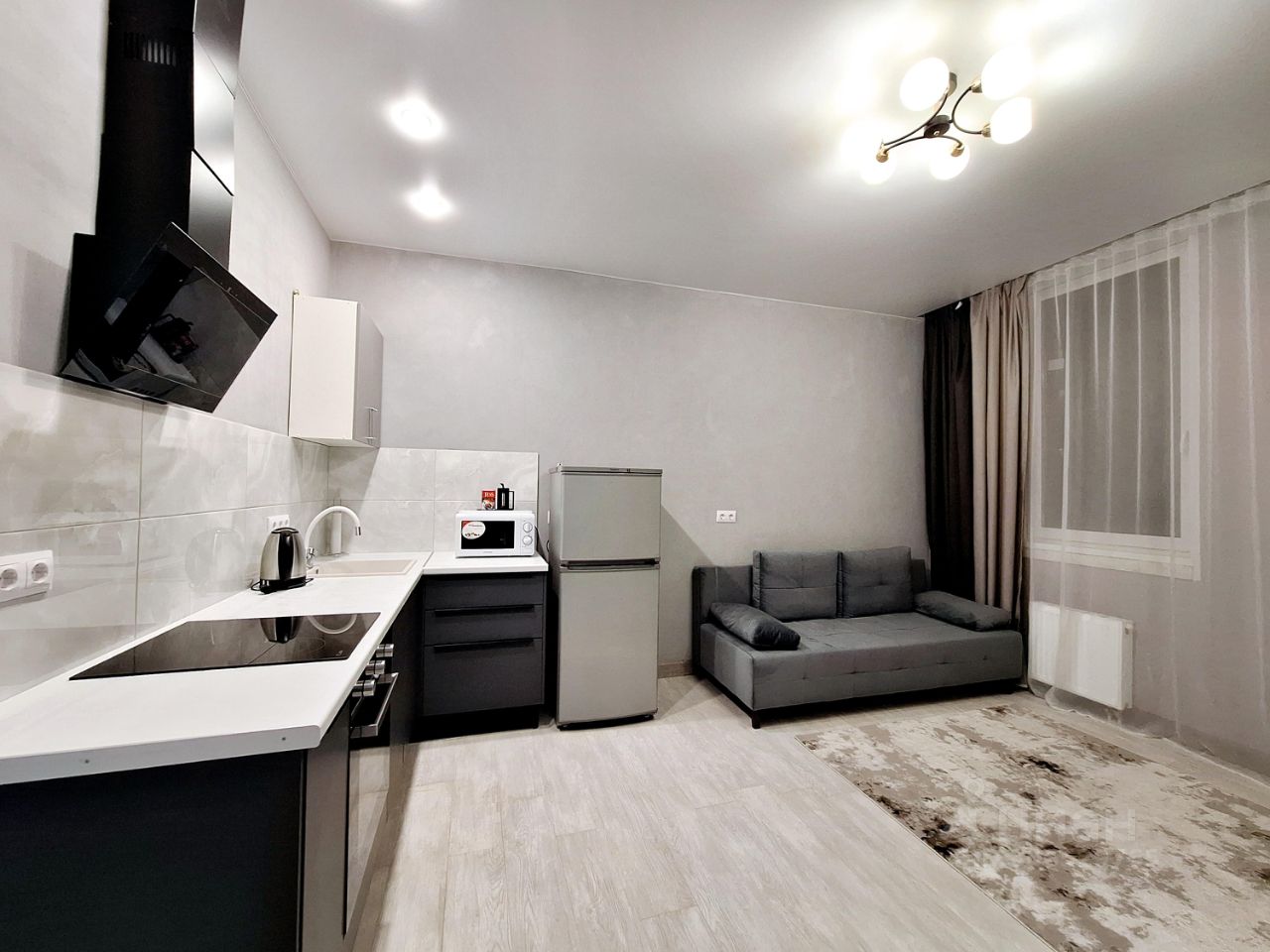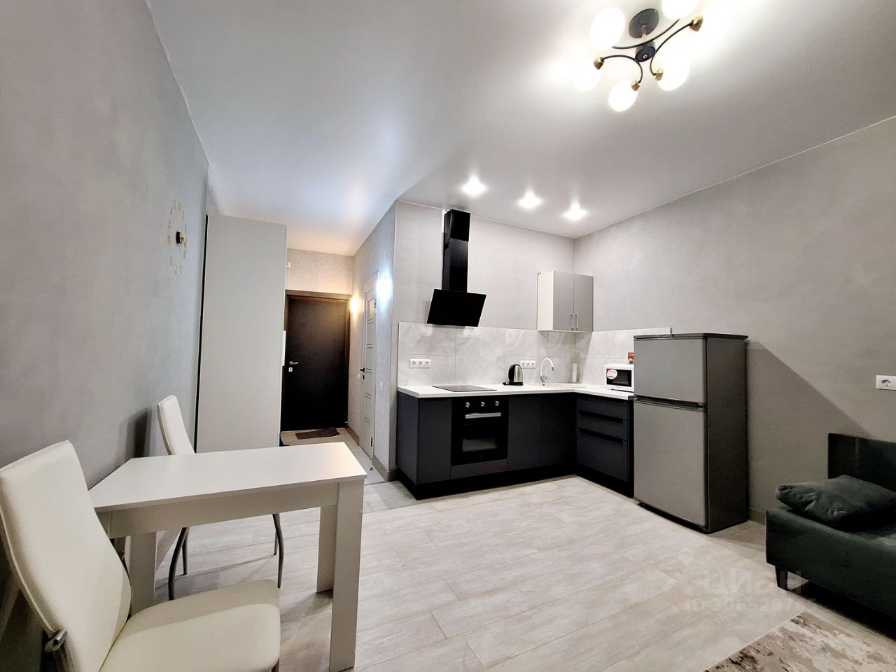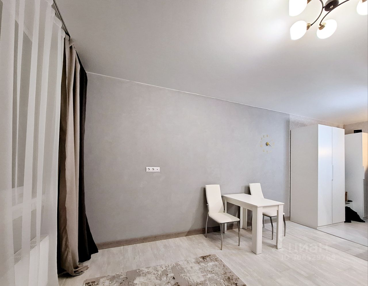 Студия в светлых тонах, новая мебель. Достаточно свободного места для проживания 1-2 человек.