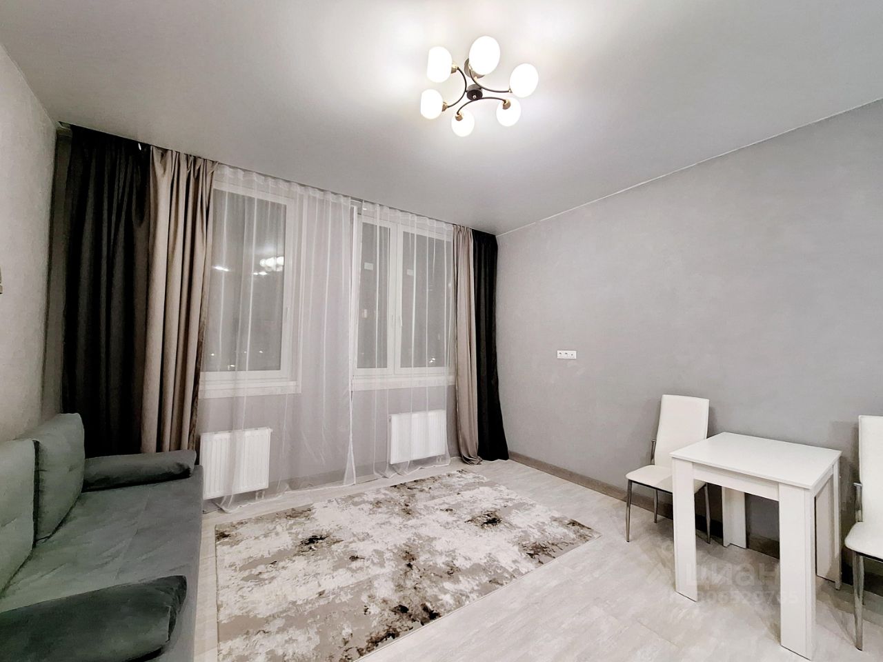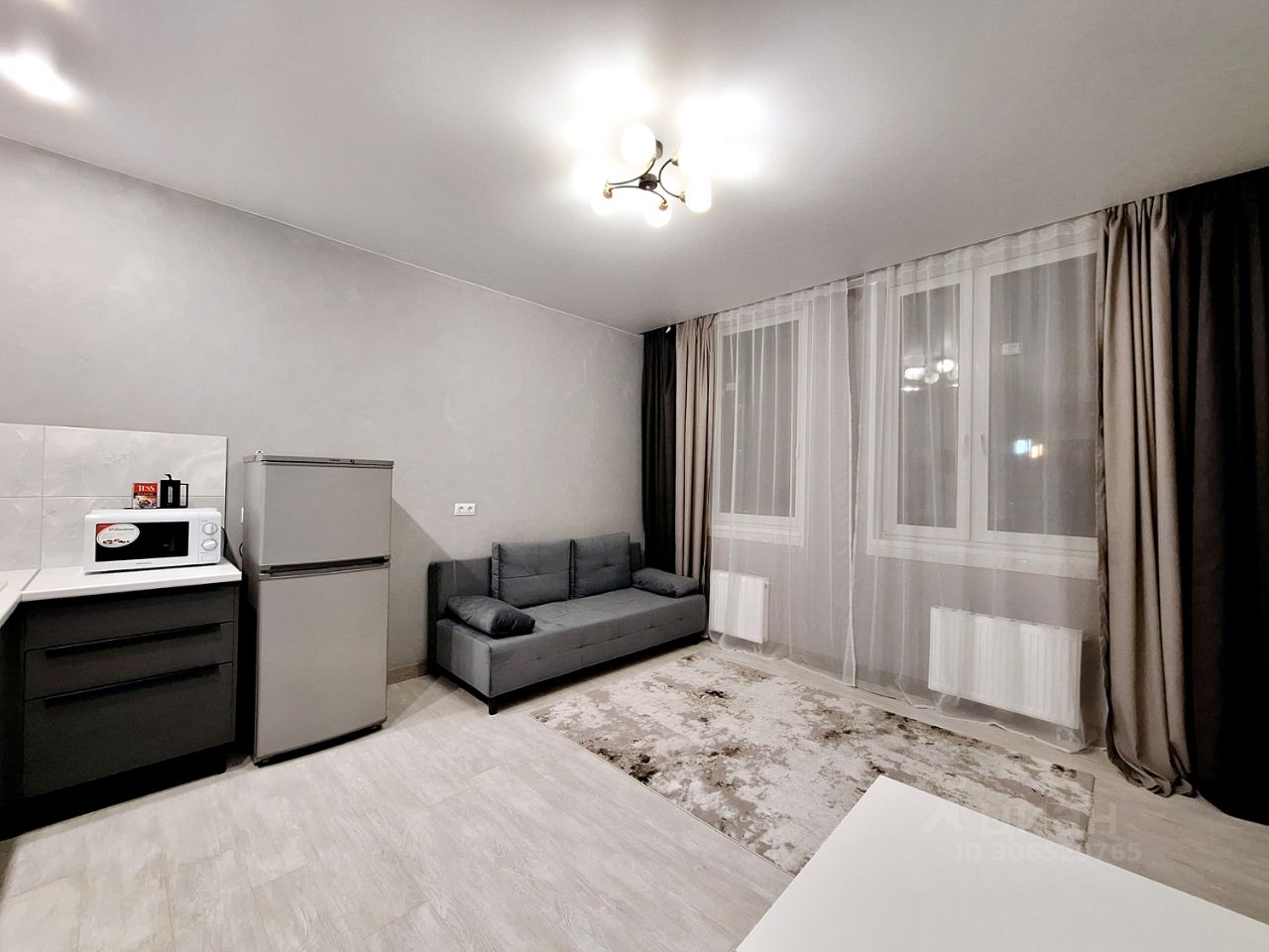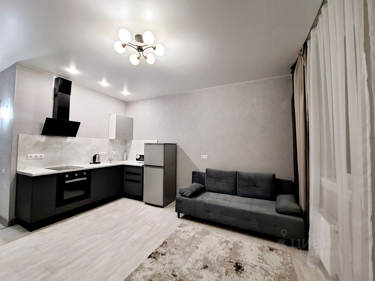 Студия в светлых тонах, новая мебель. Достаточно свободного места для проживания 1-2 человек.