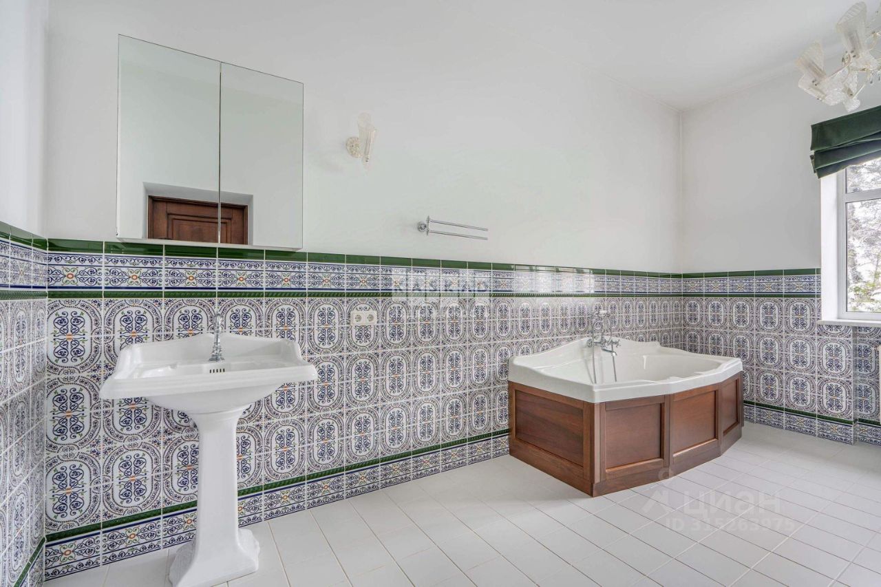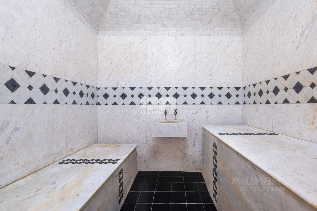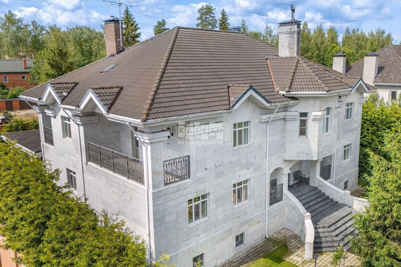 Дом возведен из кирпича и отделан натуральным камнем, крыша покрыта натуральной черепицей. Главной особенностью является большая гостиная с выходом на террасу и уютная зона с камином, оформленным белым камнем. Кухня выполнена на заказ из высококачественных материалов и укомплектована всей необходимой встроенной техникой от немецкого производителя Bosch. Полы в комнатах выполнены из наборного паркета, лестница сделана из натурального камня. Светлые отделочные материалы и использование натуральных компонентов создают теплую атмосферу, подходящую для загородной жизни. Регулировка тепла осуществляется контурным отоплением, а также дополнительно предусмотрены теплые полы на первых двух этажах и обогрев стен на втором этаже. На цокольном этаже располагается скиммерный бассейн с подогревом, русская баня на дровах, хаммам и бильярдный зал. Объект продается без предметов интерьера. Поселковые платежи отсутствуют!