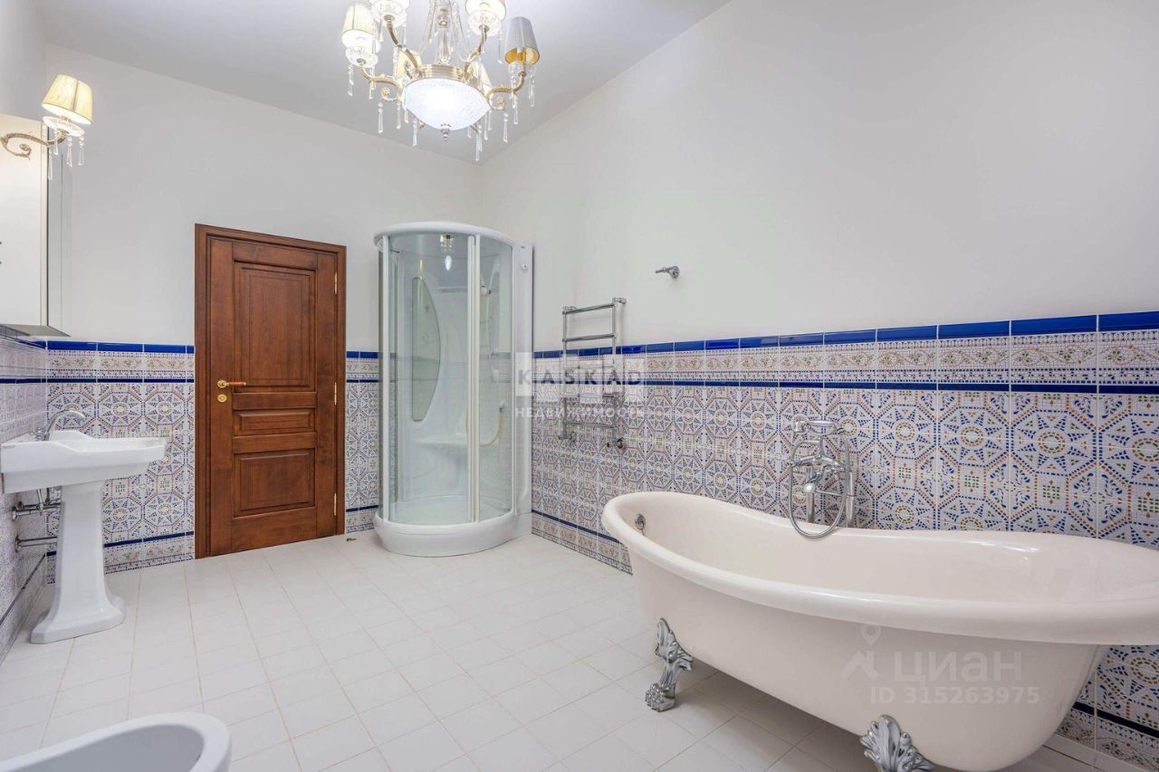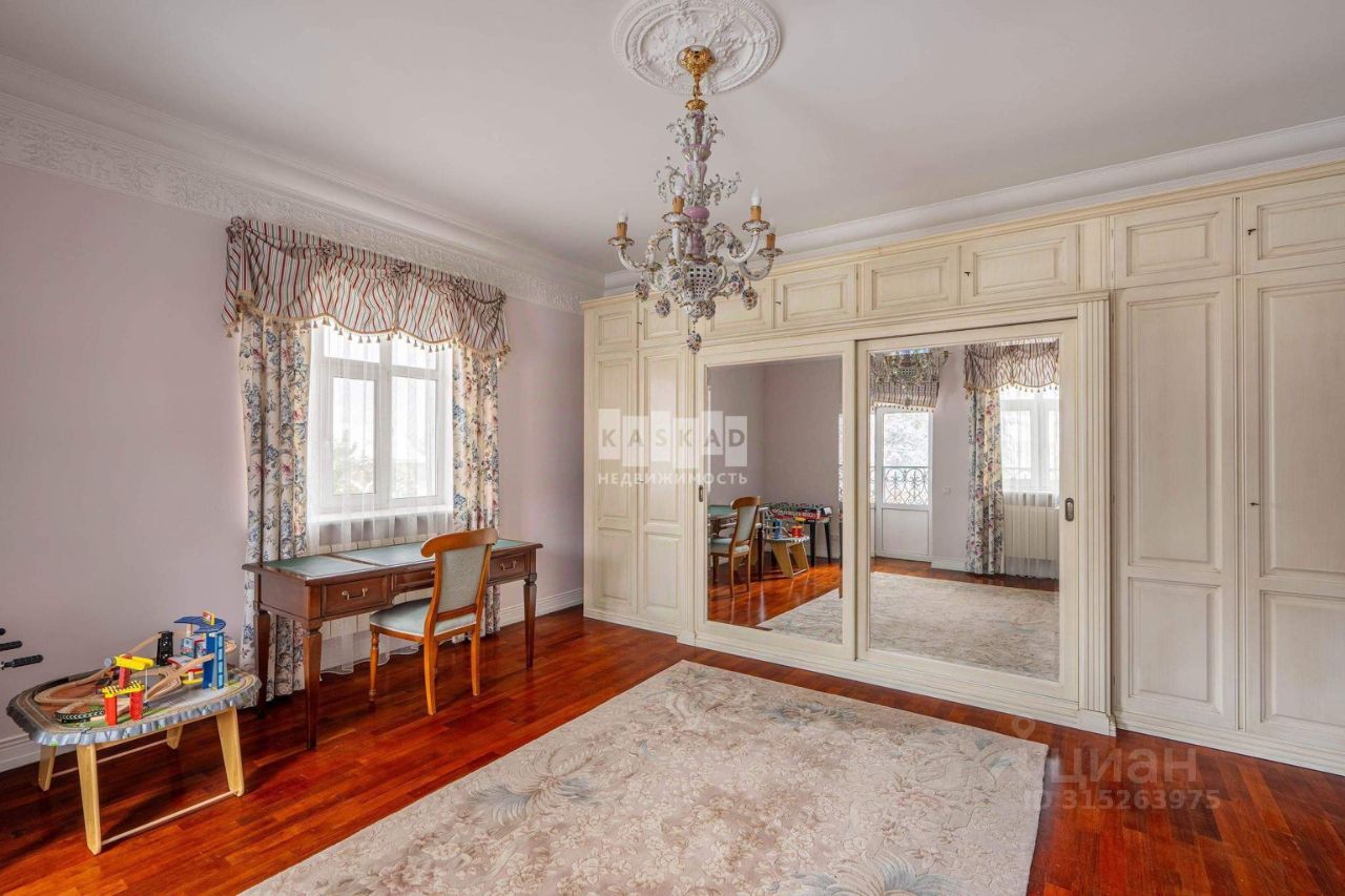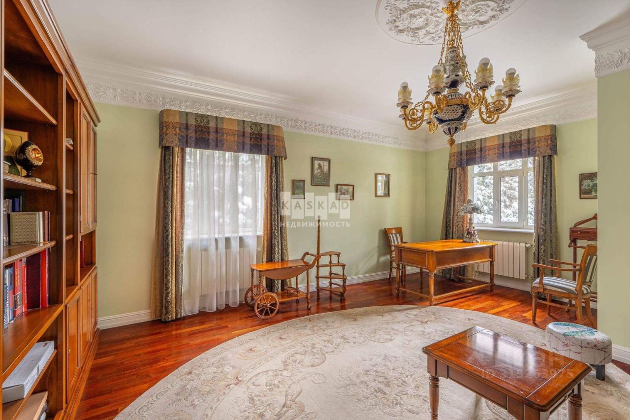 Дом возведен из кирпича и отделан натуральным камнем, крыша покрыта натуральной черепицей. Главной особенностью является большая гостиная с выходом на террасу и уютная зона с камином, оформленным белым камнем. Кухня выполнена на заказ из высококачественных материалов и укомплектована всей необходимой встроенной техникой от немецкого производителя Bosch. Полы в комнатах выполнены из наборного паркета, лестница сделана из натурального камня. Светлые отделочные материалы и использование натуральных компонентов создают теплую атмосферу, подходящую для загородной жизни. Регулировка тепла осуществляется контурным отоплением, а также дополнительно предусмотрены теплые полы на первых двух этажах и обогрев стен на втором этаже. На цокольном этаже располагается скиммерный бассейн с подогревом, русская баня на дровах, хаммам и бильярдный зал. Объект продается без предметов интерьера. Поселковые платежи отсутствуют!