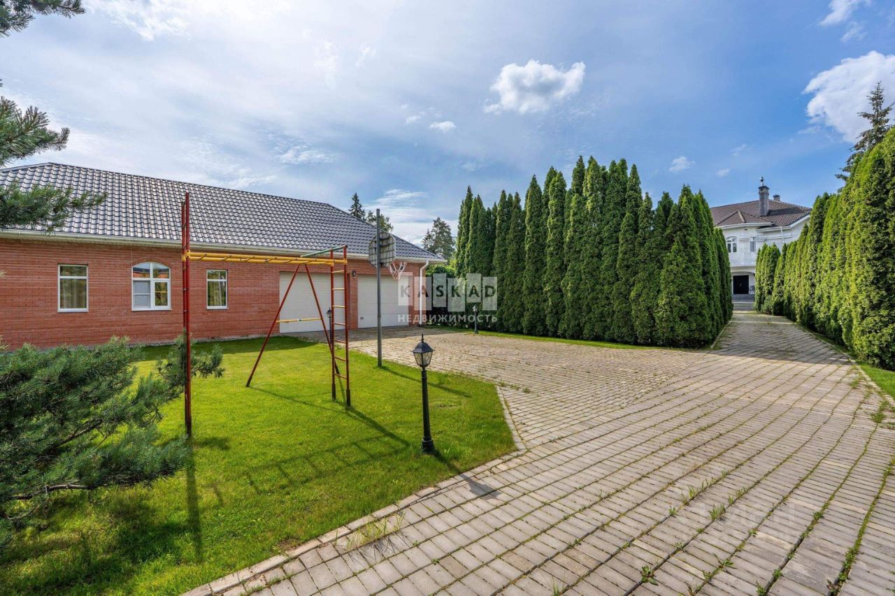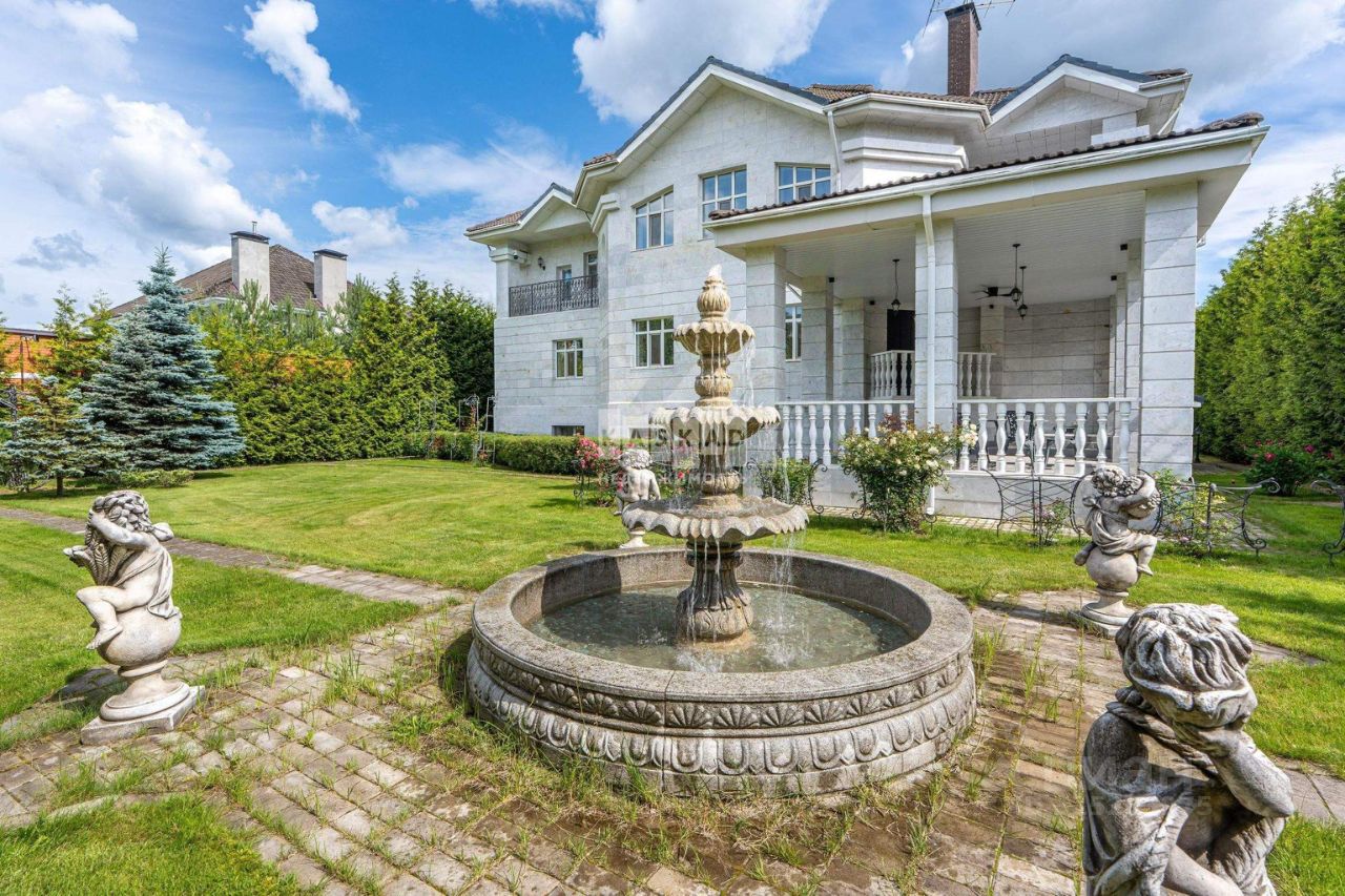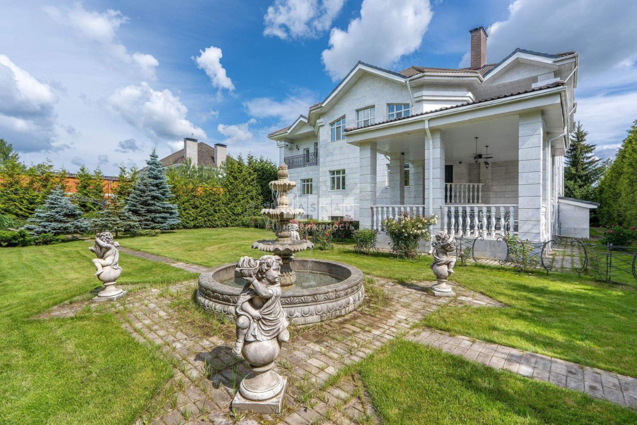 Роскошный дом с бассейном площадью 638 кв.м. с уникальной отделкой, находящийся в поселке Аносино, всего в 30 километрах от МКАД по Новорижскому шоссе. Эта великолепная усадьба расположена на участке в 28 соток, окруженном высокими многолетними туями и продуманным ландшафтным дизайном. На территории имеются: фонтан с четырьмя скульптурами, дополнительное строение с гаражом на два автомобиля и двухкомнатная квартира для обслуживающего персонала, теплица, а также вольер для собаки.