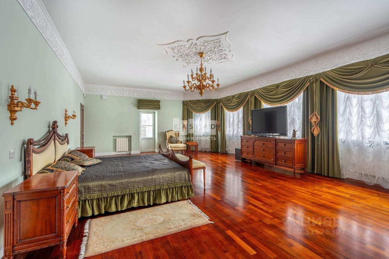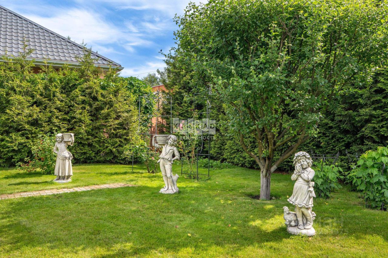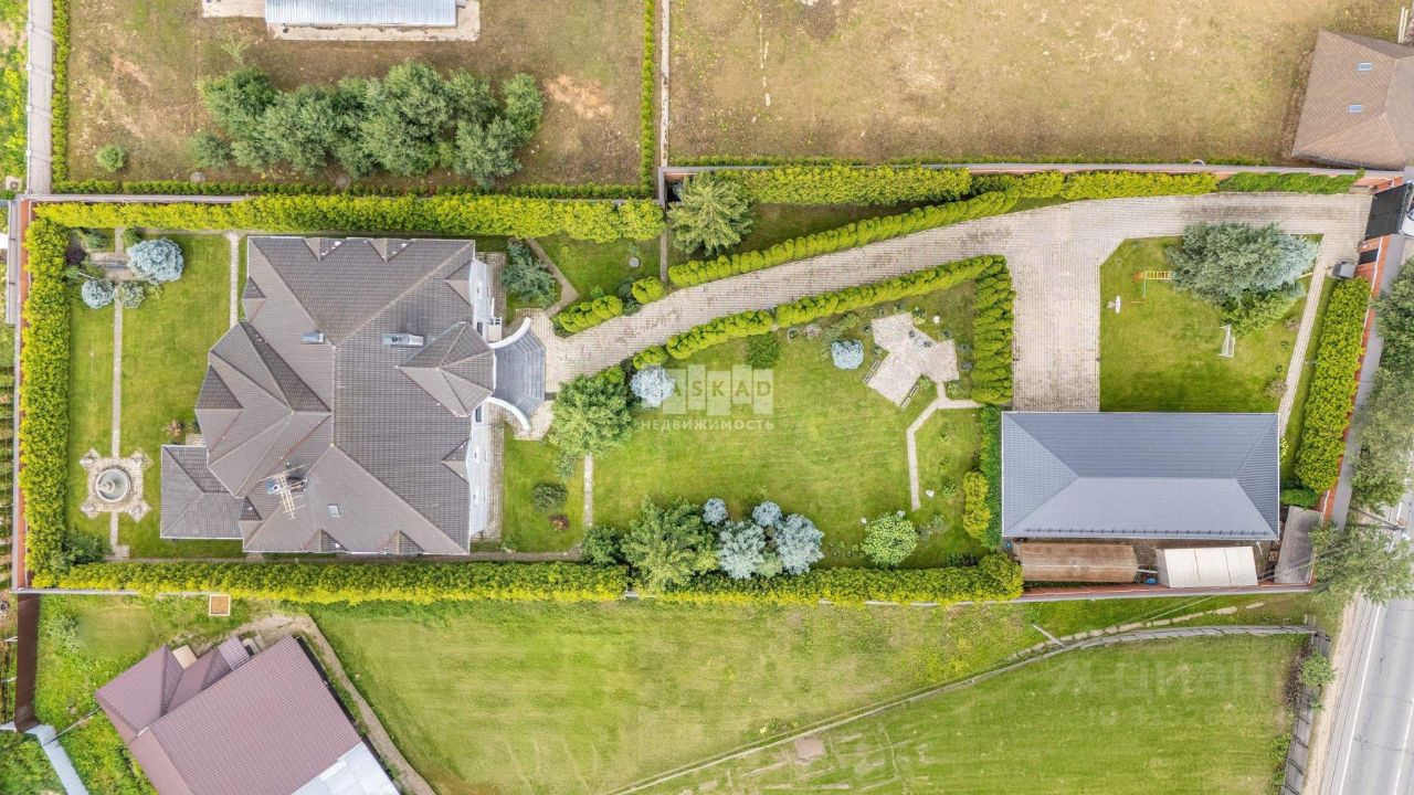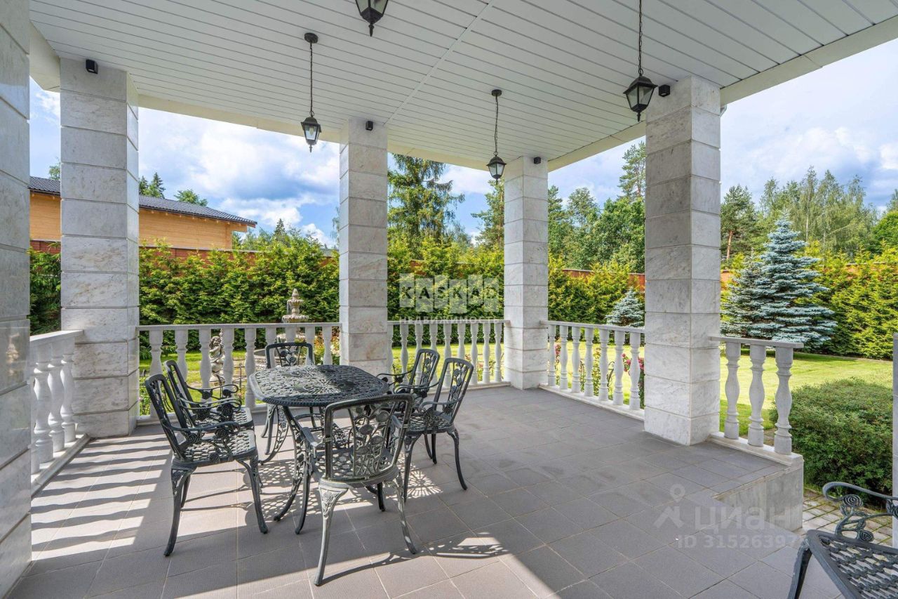 Роскошный дом с бассейном площадью 638 кв.м. с уникальной отделкой, находящийся в поселке Аносино, всего в 30 километрах от МКАД по Новорижскому шоссе. Эта великолепная усадьба расположена на участке в 28 соток, окруженном высокими многолетними туями и продуманным ландшафтным дизайном. На территории имеются: фонтан с четырьмя скульптурами, дополнительное строение с гаражом на два автомобиля и двухкомнатная квартира для обслуживающего персонала, теплица, а также вольер для собаки.