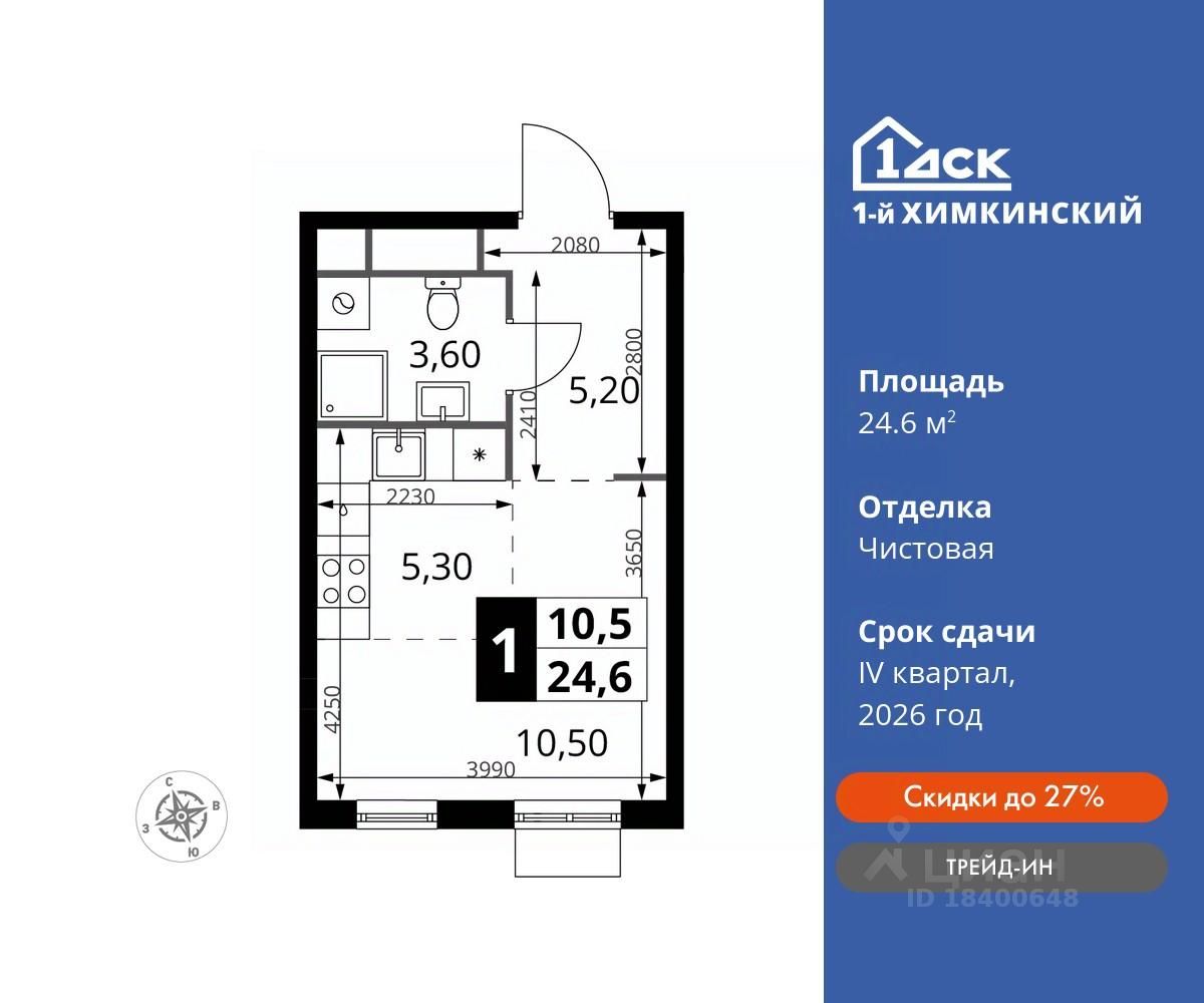 Максимальная скидка при 100% оплате. Лучший жилой комплекс Московской области! Победитель премии Urban 2024, номинация ''Лучший строящийся жилой комплекс комфорт-класса Московской области''. Прямая продажа от застройщика! Жилой Комплекс класса Комфорт. Продаётся студия номер 94 общей площадью 24.6 кв.м на 14-м этаже 17 этажного дома. Чистовая отделка.
