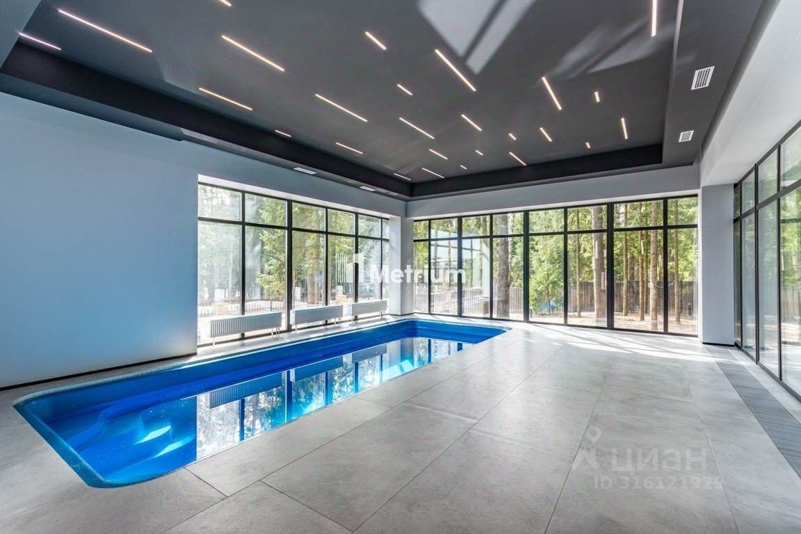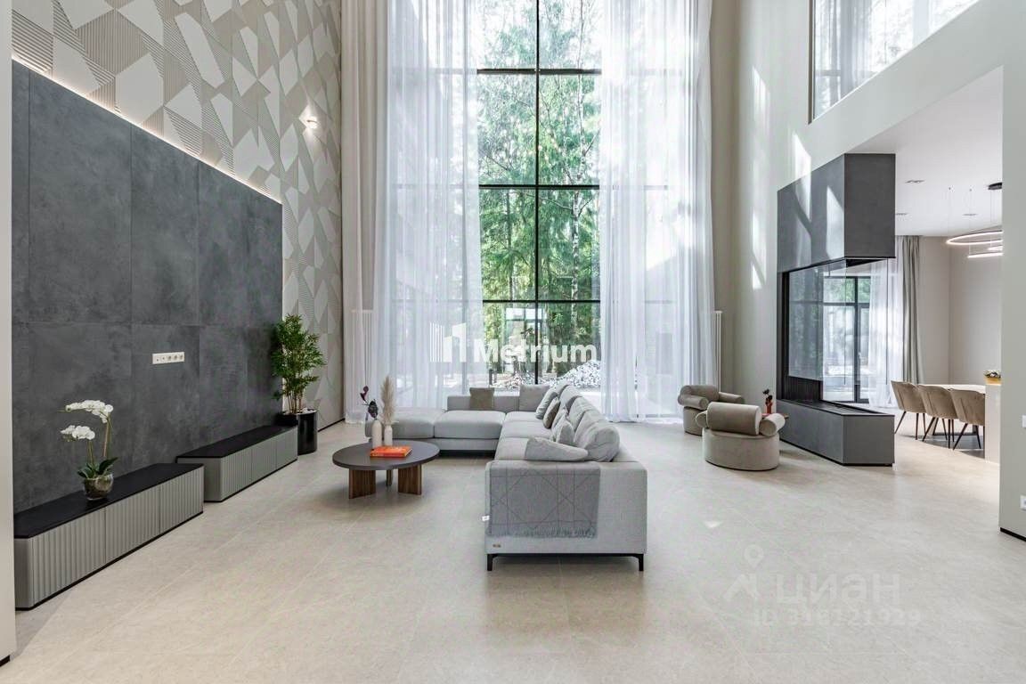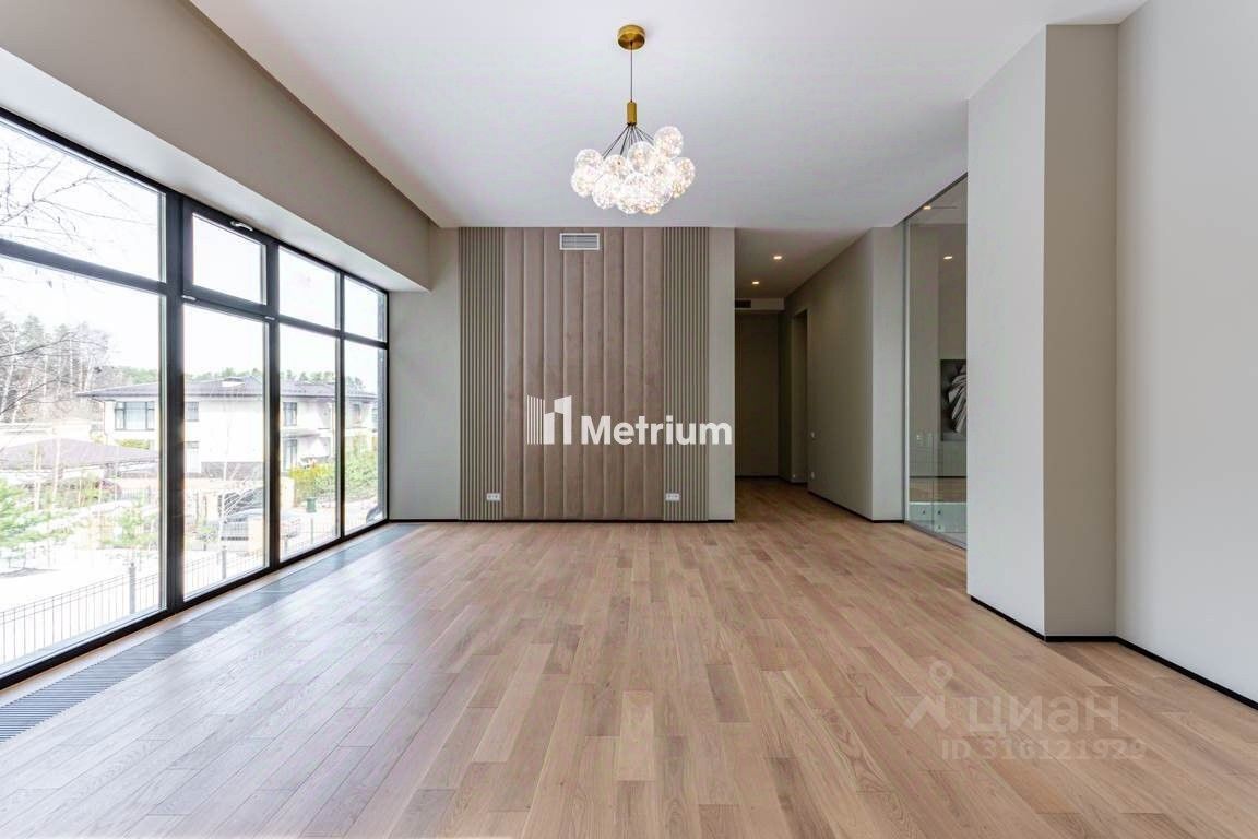 ID 13441 Вариант Коттедж ''под ключ'' 605м в КП ''Ренессанс Парк'' в 19 км от МКАД по Новорижскому шоссе! Прекрасное предложение для тех, кто ценит современный дизайн и лаконичность! Дом выполнен в современном стиле с чистовой отделкой и расположен на лесном участке. Благодаря остеклению в пол открываются приятные виды, в доме всегда будет много света. Отделка дома выполнена из качественных материалов, кухня частично укомплектована техникой и мебелью, установлена приточно-вытяжная вентиляция. Центром расслабления станут бассейн, сауна и комната отдыха. На участке произрастают многолетние деревья.