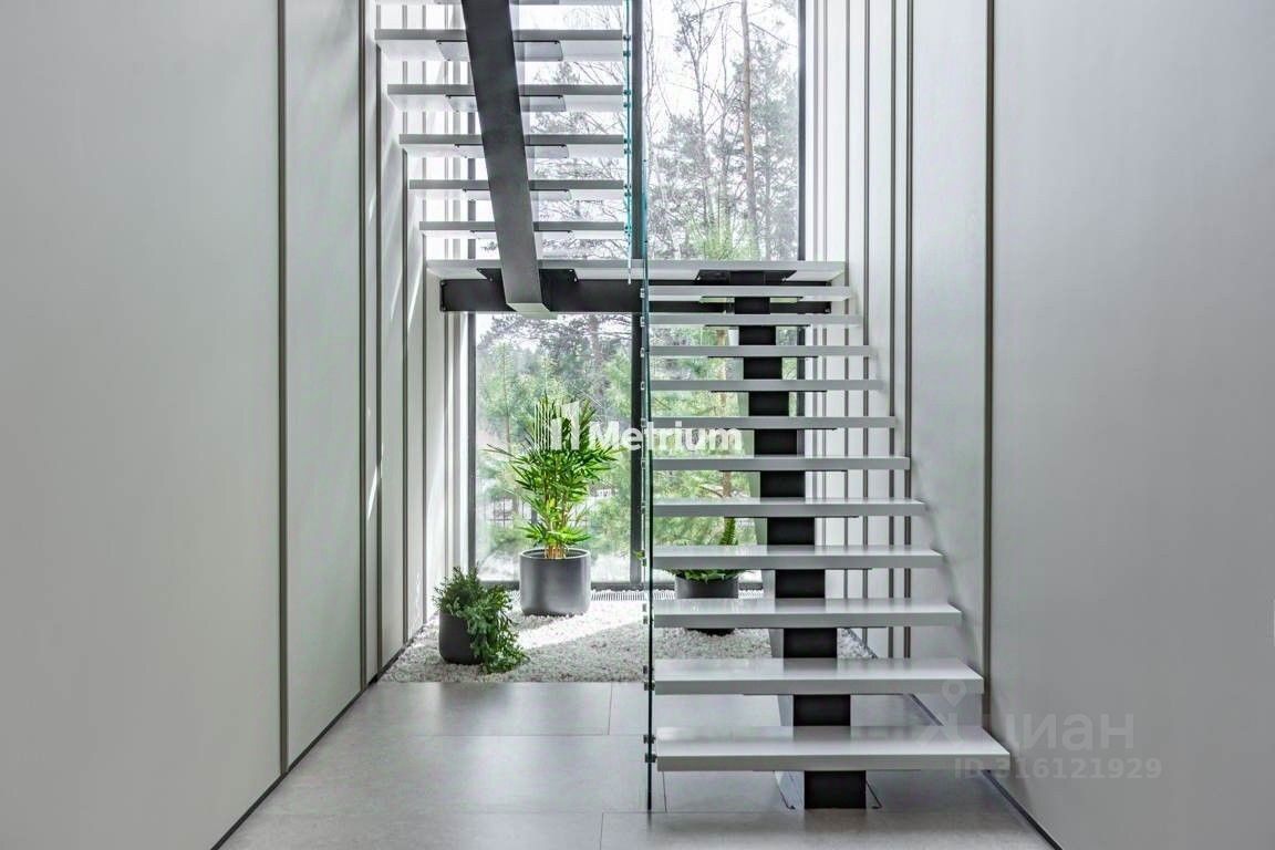 ID 13441 Вариант Коттедж ''под ключ'' 605м в КП ''Ренессанс Парк'' в 19 км от МКАД по Новорижскому шоссе! Прекрасное предложение для тех, кто ценит современный дизайн и лаконичность! Дом выполнен в современном стиле с чистовой отделкой и расположен на лесном участке. Благодаря остеклению в пол открываются приятные виды, в доме всегда будет много света. Отделка дома выполнена из качественных материалов, кухня частично укомплектована техникой и мебелью, установлена приточно-вытяжная вентиляция. Центром расслабления станут бассейн, сауна и комната отдыха. На участке произрастают многолетние деревья. Описание этажей: 1 этаж: холл, кухня-столовая, гостиная-каминный зал (второй свет), спальня гостевая/кабинет, с/у, SPA-зона бассейн, сауна, комната отдыха, с/у, котельная, постирочная, гардеробная, гараж, 2 этаж: мастер-спальня с гардеробной и с/у, 3 спальни с персональными гардеробными и с/у. 1 этаж: холл, кухня-столовая, гостиная-каминный зал (второй свет), спальня гостевая/кабинет, с/у, SPA-зона бассейн, сауна, комната отдыха, с/у, котельная, постирочная, гардеробная, гараж, 2 этаж: мастер-спальня с гардеробной и с/у, 3 спальни с персональными гардеробными и с/у.