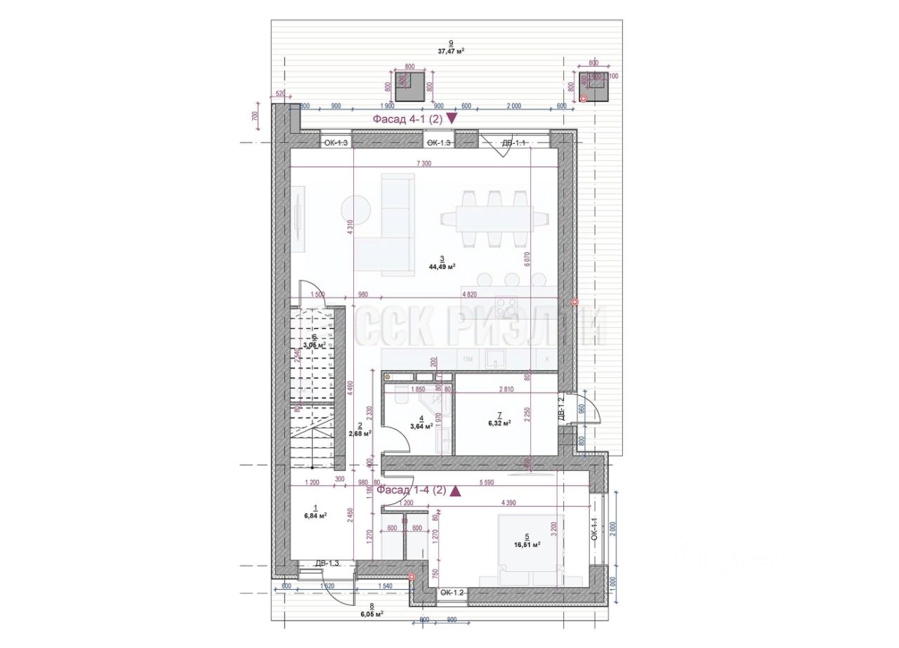 Тщательно продуманное планировочное решение: -Просторная кухня-гостиная 44,5м2. -гостевая спальня/кабинет на первом этаже -три спальни на 2 этаже, одна из которых с балконом и общий санузел -Кабинет, который может быть гостевой спальней - прихожая с гостевым с/у, гардеробной зоной. -Отдельная постирочная комната -Выход на террасу 37,5м2 из кухни-гостиной.