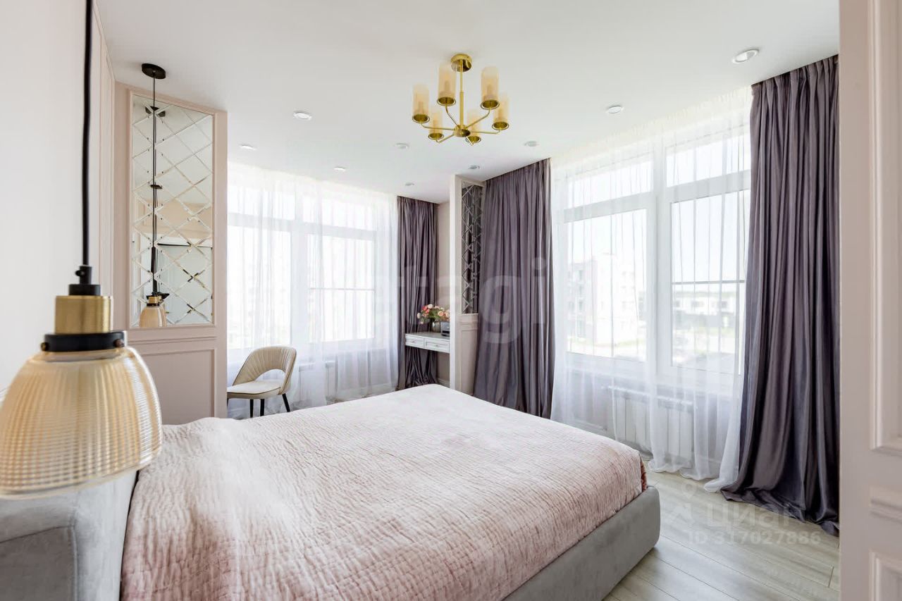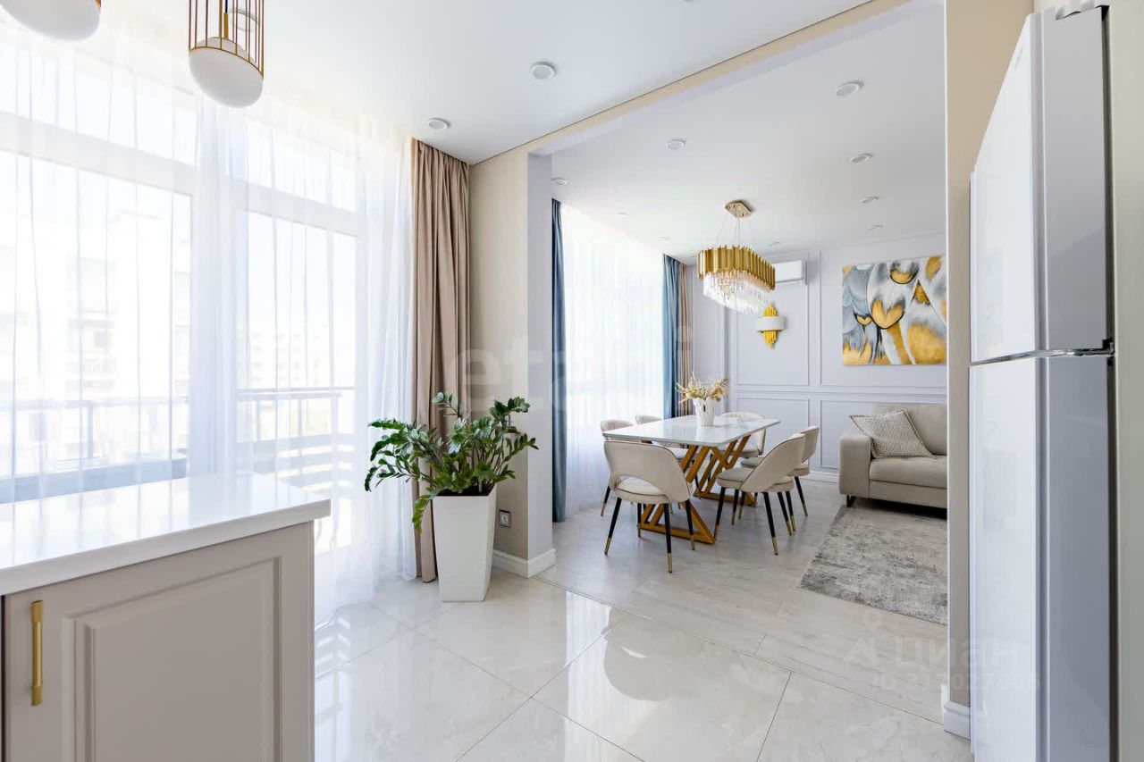 кухня-столовая с большой светлой гостиной, 2 полноценные спальни, 2 санузла, французский балкон, гардеробная комната, постирочная, просторная прихожая, отдельный широкий коридор для вещей у входной зоны в квартиру Высота полотка 2,6м!