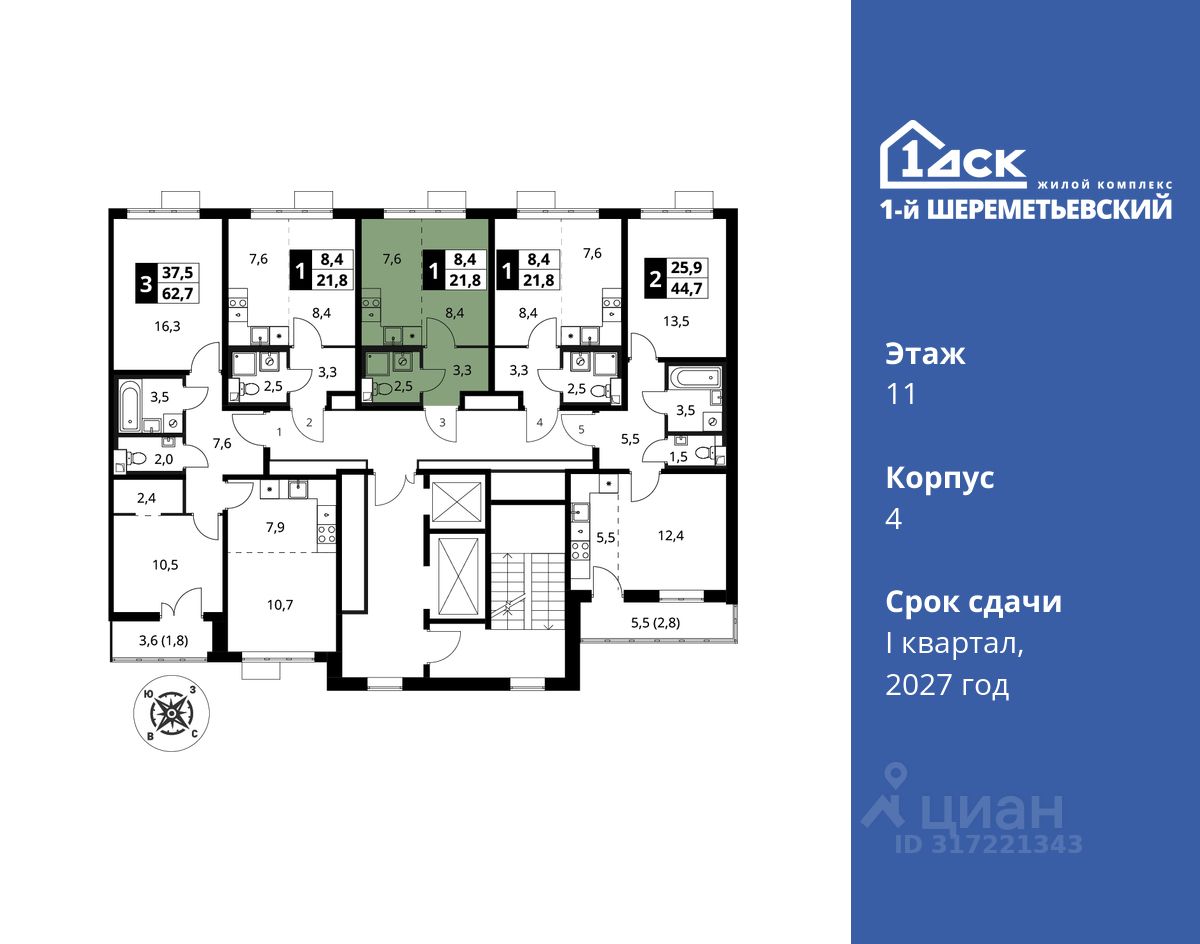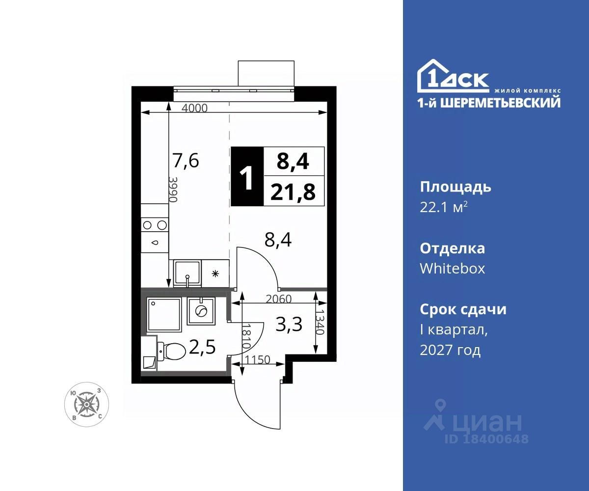 Максимальные скидки при 100% оплате. Прямая продажа от застройщика! Жилой Комплекс класса Комфорт плюс. Продаётся студия номер 753 общей площадью 22.1 кв.м на 11-м этаже 16 этажного дома. Отделка Whitebox.