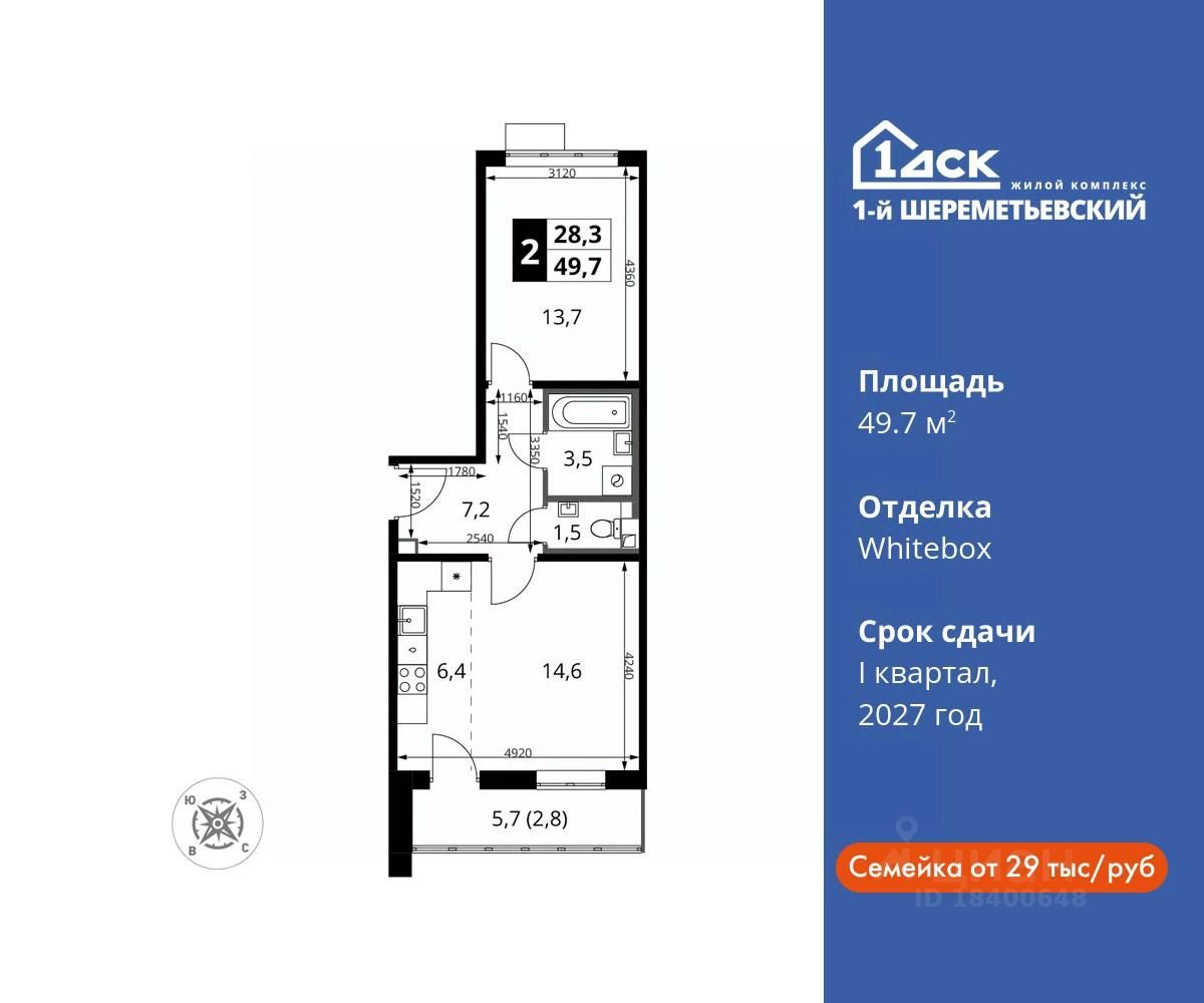 Общая площадь49,7 м2