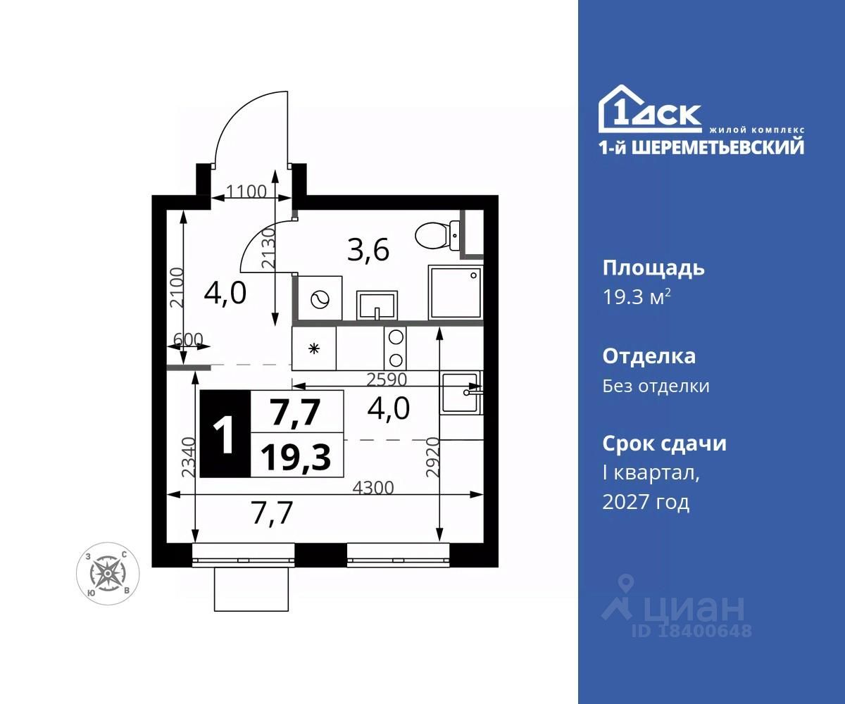 Максимальные скидки при 100% оплате. Прямая продажа от застройщика! Жилой Комплекс класса Комфорт плюс. Продаётся студия номер 1052 общей площадью 19.3 кв.м на 6-м этаже 17 этажного дома. Без отделки.