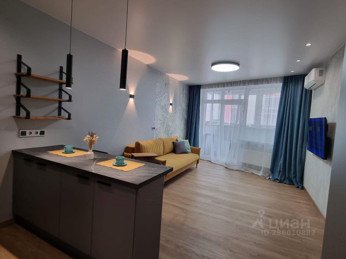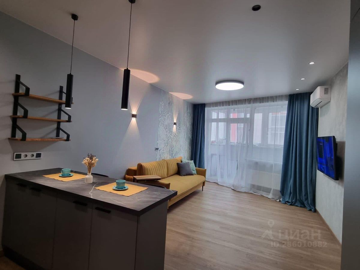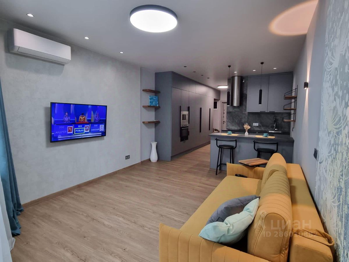 Студия в отличном состоянии, полностью укомплектована новой мебелью и техникой для комфортного проживания. Большой балкон.