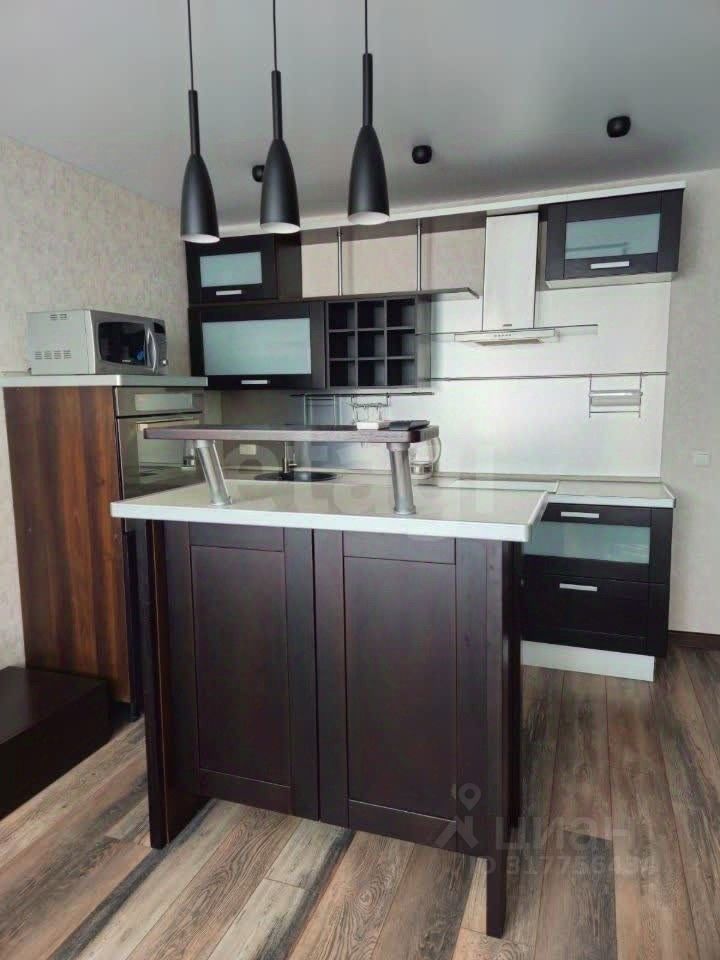 Квартира включает в себя: * большая гостиная 21.4 кв.м. с кухней и барной стойкой из натурального дуба цвета венге, большим раздвижным диваном, * полноценная изолированная спальня 11.6 кв.м. с двухспальной кроватью, рабочим местом и застекленной лоджией с окном в пол, * ванная комната в стиле лофт, с новой акриловой ванной и сантехникой. Кухня, кухонная встроенная техника, холодильник и мебель остаются новым владельцам.