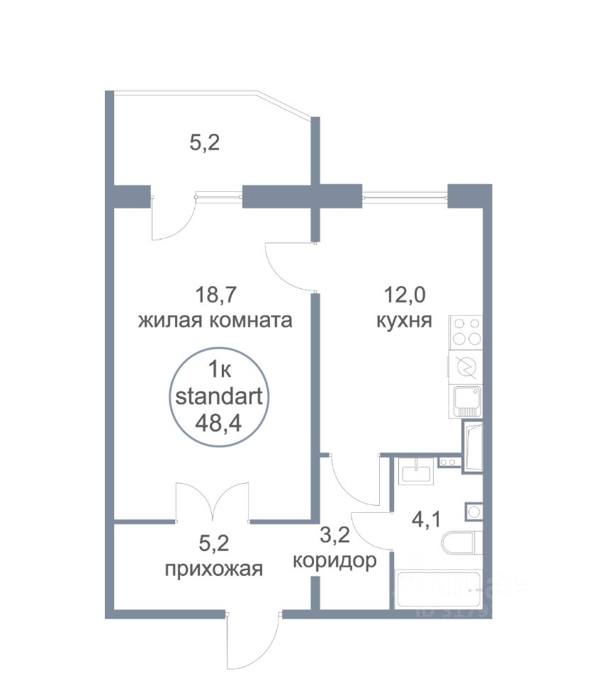 Просторная кухня 12 кв.м., комната 18,7 кв