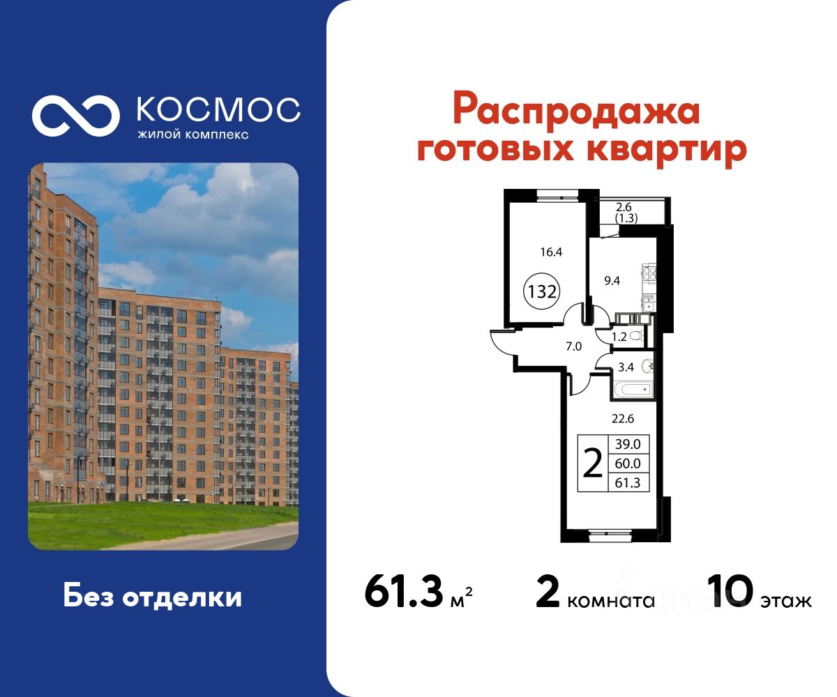 Общая площадь61,3 м2