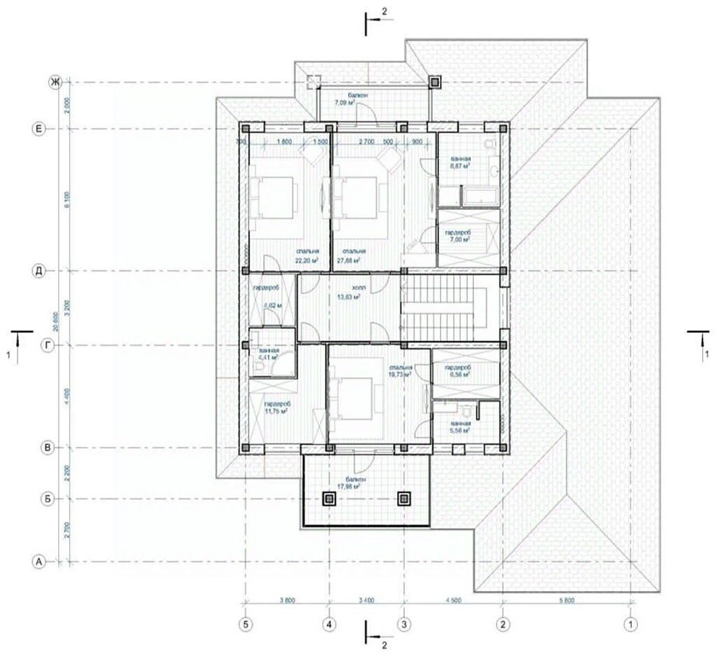 2 этаж - 3 спальни с с/у и гардеробными, кабинет.