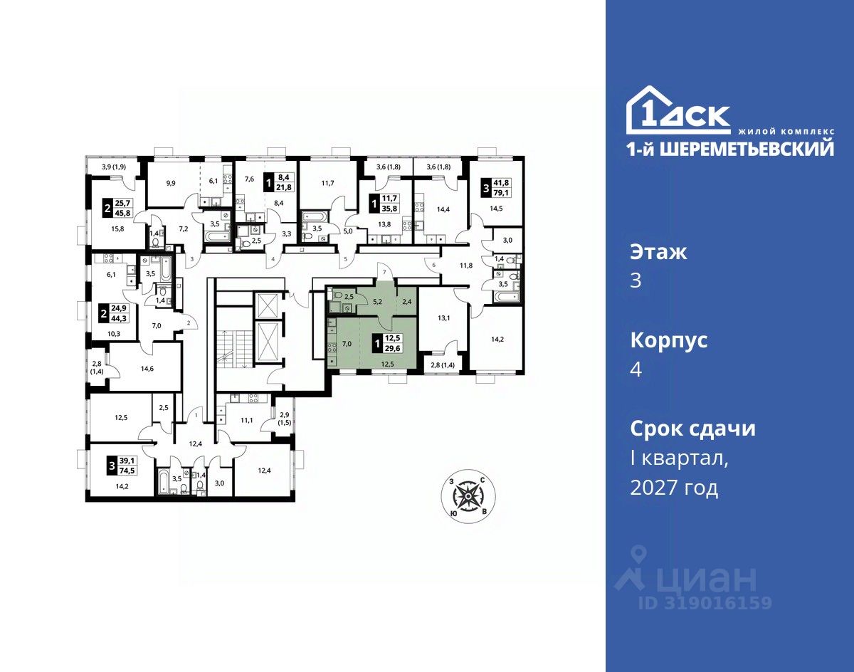 Максимальные скидки при 100% оплате. Прямая продажа от застройщика! Жилой Комплекс класса Комфорт плюс. Продаётся студия номер 374 общей площадью 29.6 кв.м на 3-м этаже 16 этажного дома. Отделка Whitebox.