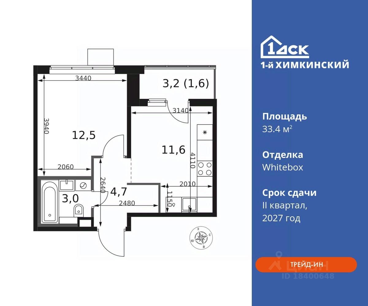 Общая площадь33,4 м2