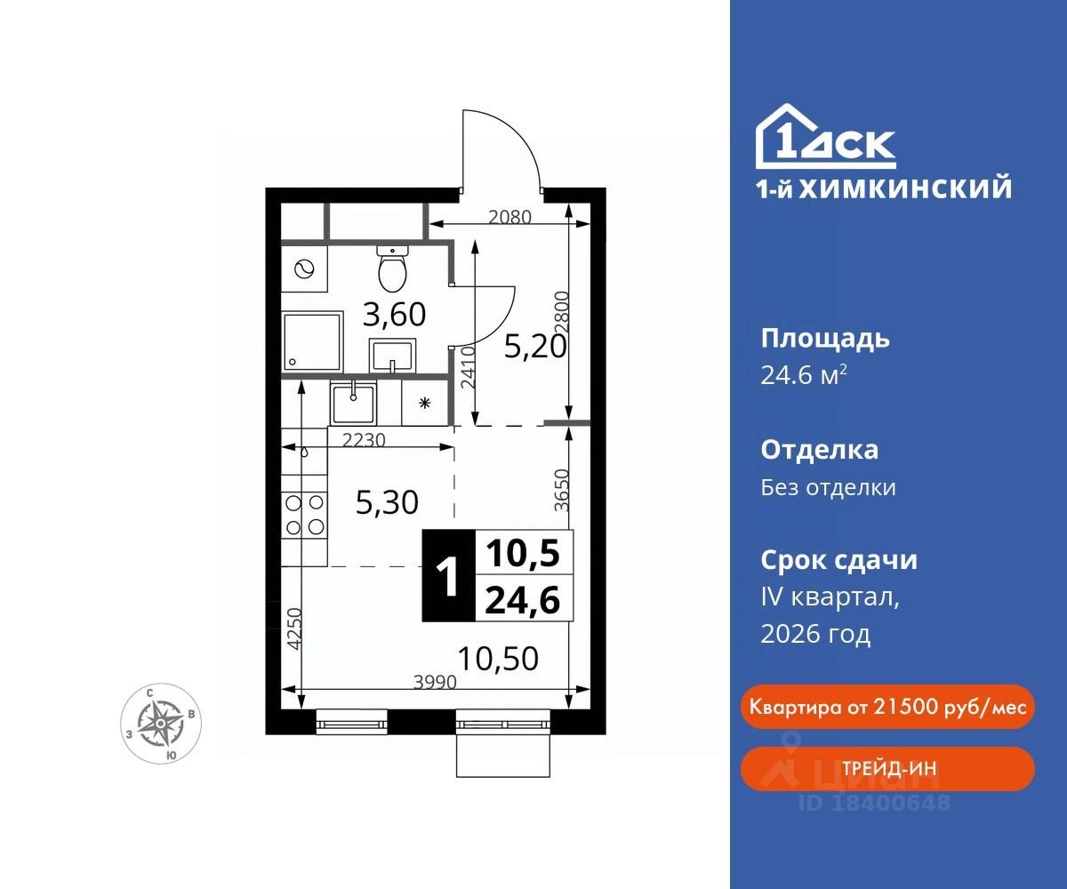 Семейная ипотека без наценки со скидками до 21% до конца августа! Прямая продажа от застройщика! Жилой Комплекс класса Комфорт. Продаётся студия номер 108 общей площадью 24.6 кв.м на 16-м этаже 17 этажного дома. Без отделки.