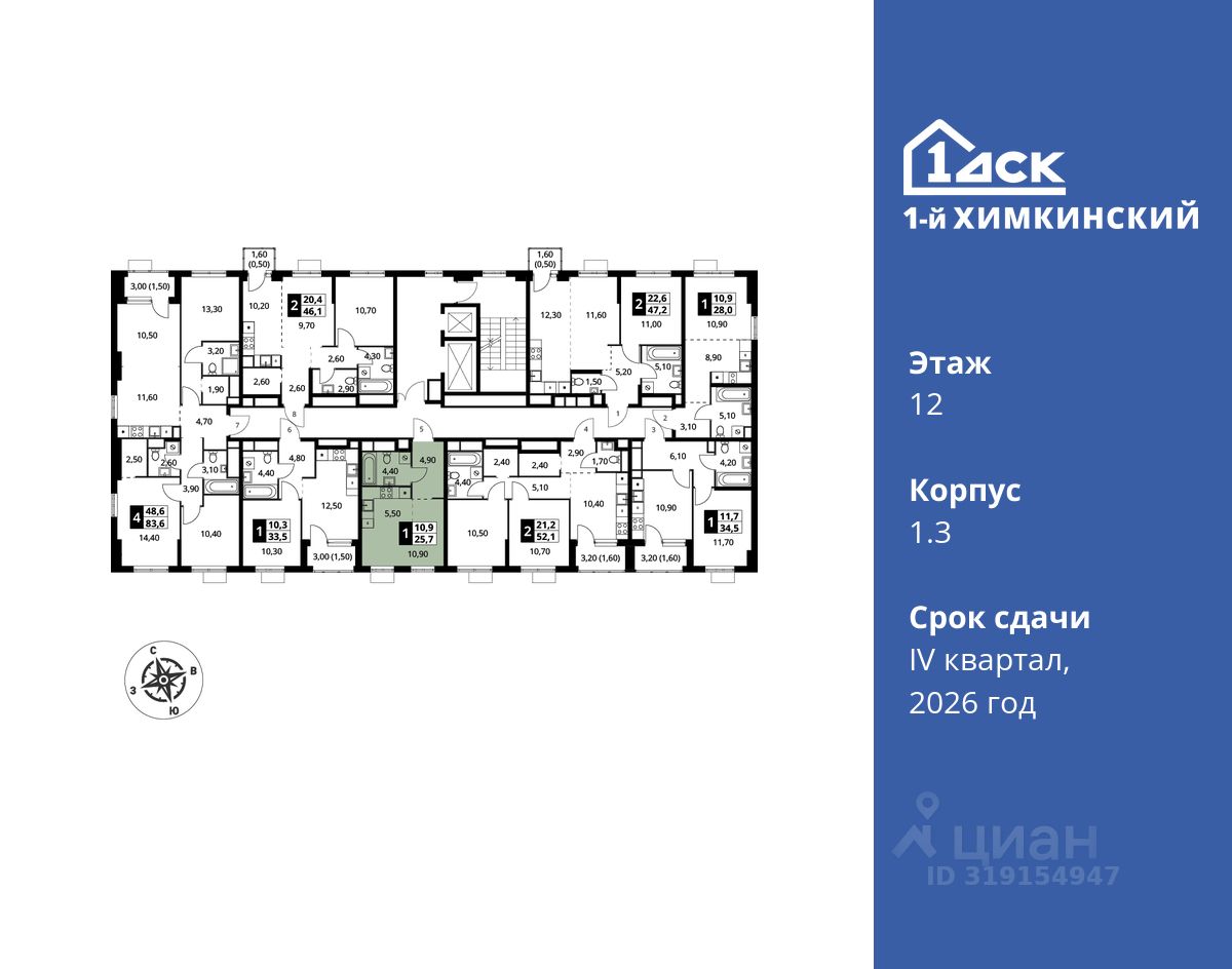 Семейная ипотека без наценки со скидками до 21% до конца августа! Прямая продажа от застройщика! Жилой Комплекс класса Комфорт. Продаётся студия номер 380 общей площадью 25.5 кв.м на 12-м этаже 12 этажного дома. Без отделки.