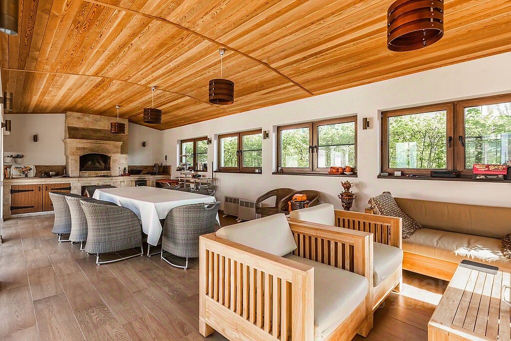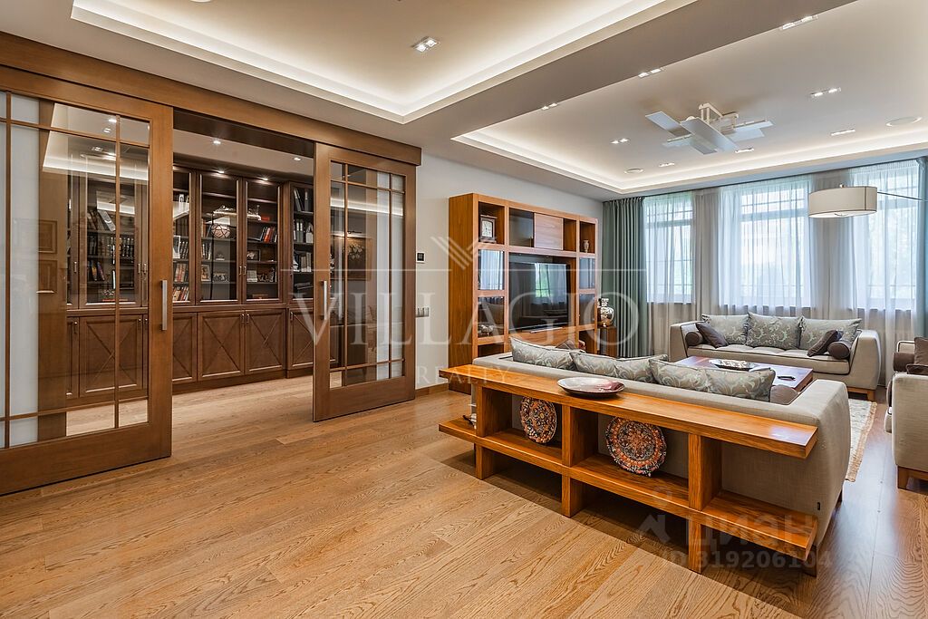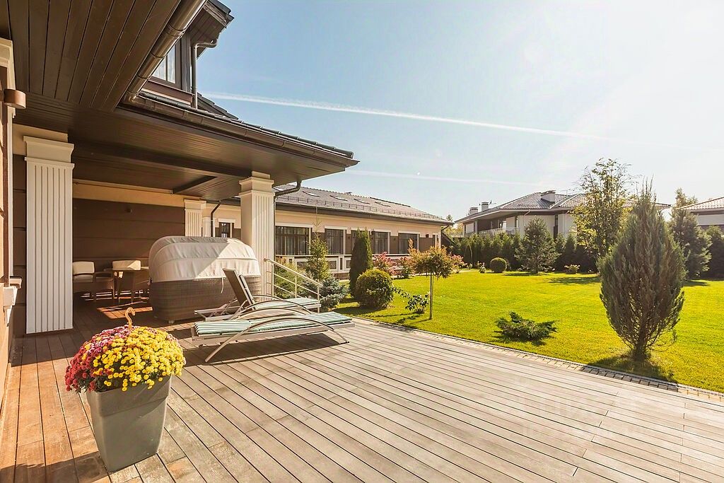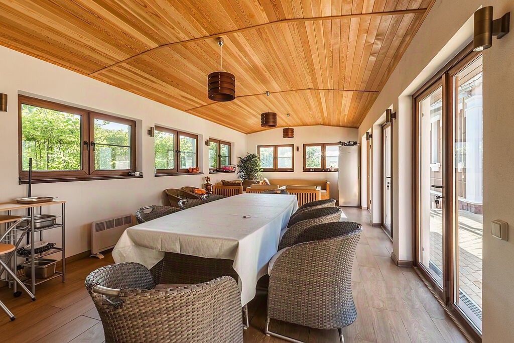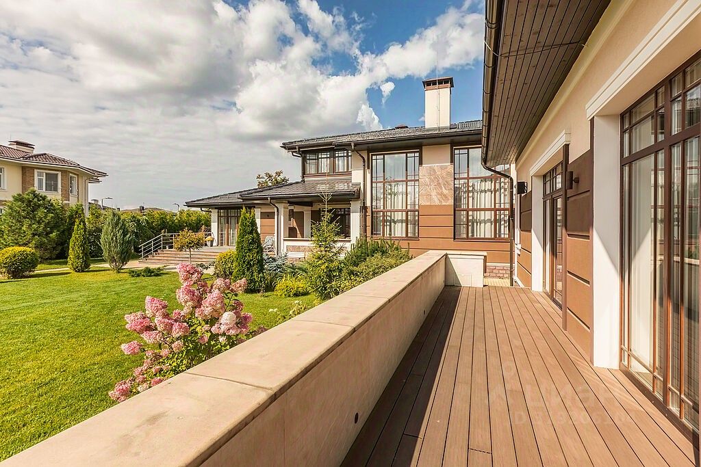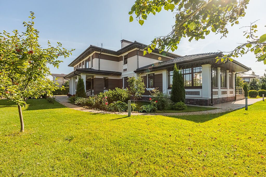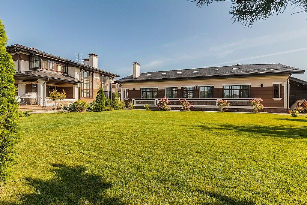 Этажом выше- большая мансарда с кино-зоной, дополнительным спальным местом и простор для занятий спортом, любимыми хобби, йогой, танцами, караоке или для игр с детьми. В доме также есть 3 гостевые комнаты, отдельная зона для проживания персонала и прачечная. Все коммуникации, дополнительные помещения для хранения расположены на цокольном этаже пристройки дома. Собирайтесь с родными и друзьями на летней веранде за чашкой ароматного чая, а в зимние снежные вечера перебирайтесь на крытую веранду и располагайтесь на мягких диванах. Для ваших автомобилей предусмотрен гараж на два машиноместа, а также дополнительная крытая зона еще для двух авто. На участке площадью 31 сот. выполнен ландшафтный дизайн: уложен сочный изумрудный газон, вымощены дорожки, смонтировано уличное освещение, система полива, посажены растения, деревья и цветы.
