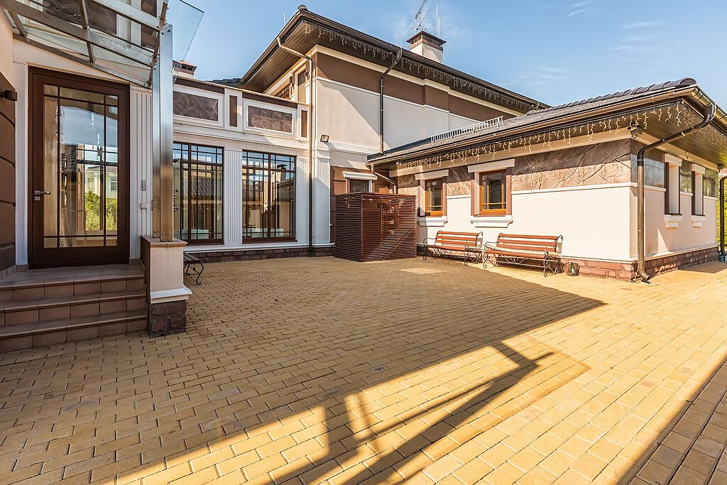 На территории также построена полноценная крытая, отдельно стоящая зона BBQ с мангалом, казаном и большим столом для приема гостей. Особняк находится на территории элитного коттеджного поселка ''Миллениум парк'', что дарит ощущение комфортной загородной жизни класса Люкс. На территории поселка построены шикарные ландшафтные парки и разведена система водных каналов протяженностью 5 км., вдоль которых проложены пешеходные и велосипедные дорожки. В центре поселка расположено природное озеро площадью почти 3 гектара с оборудованными пляжами, детскими и спортивными площадками. Въезд в поселок ''Миллениум парк'' осуществляется через контрольно-пропускные пункты, оборудованные шлагбаумами и системами круглосуточного видеонаблюдения.