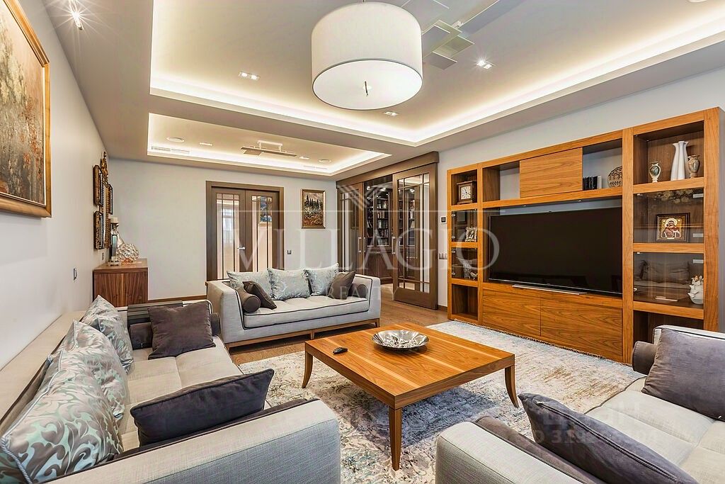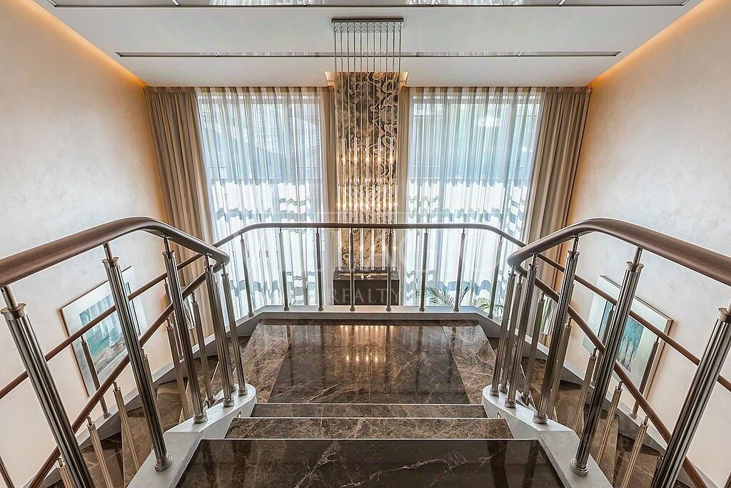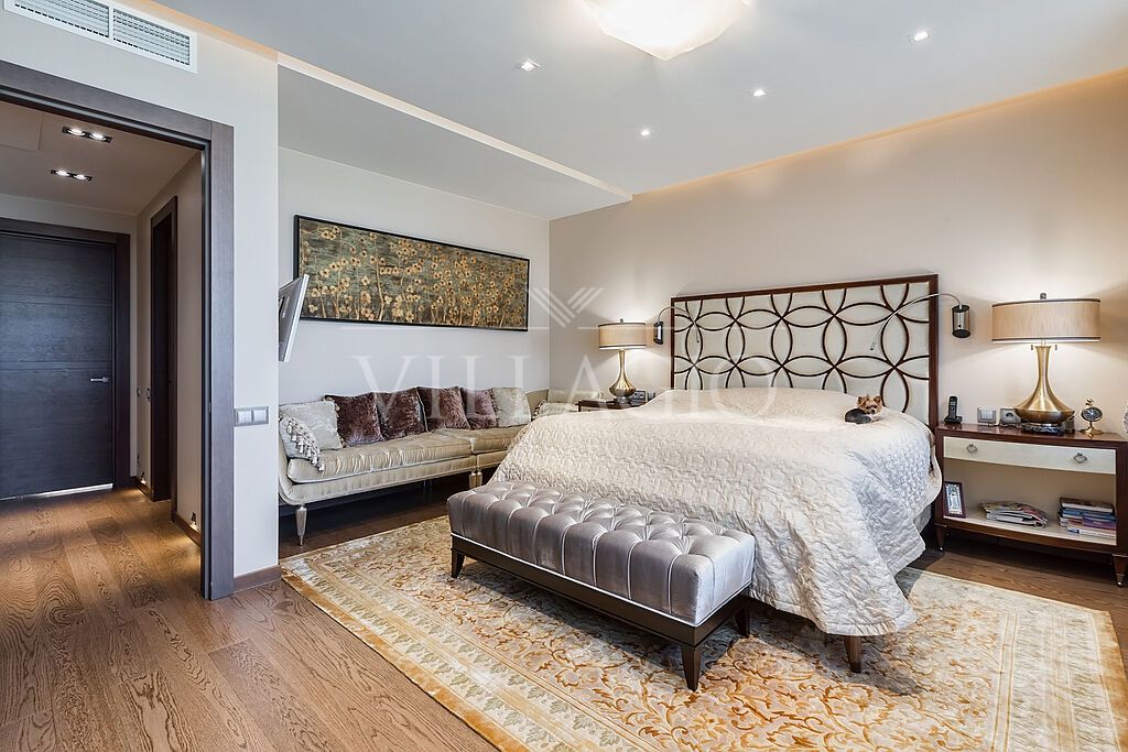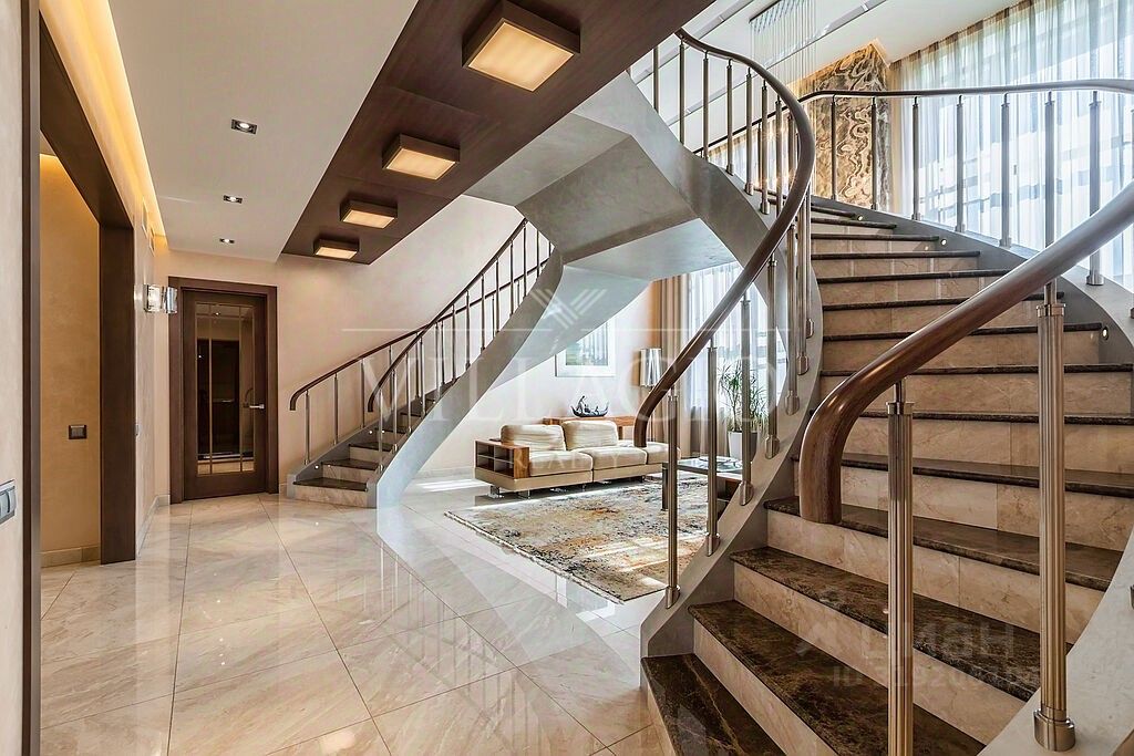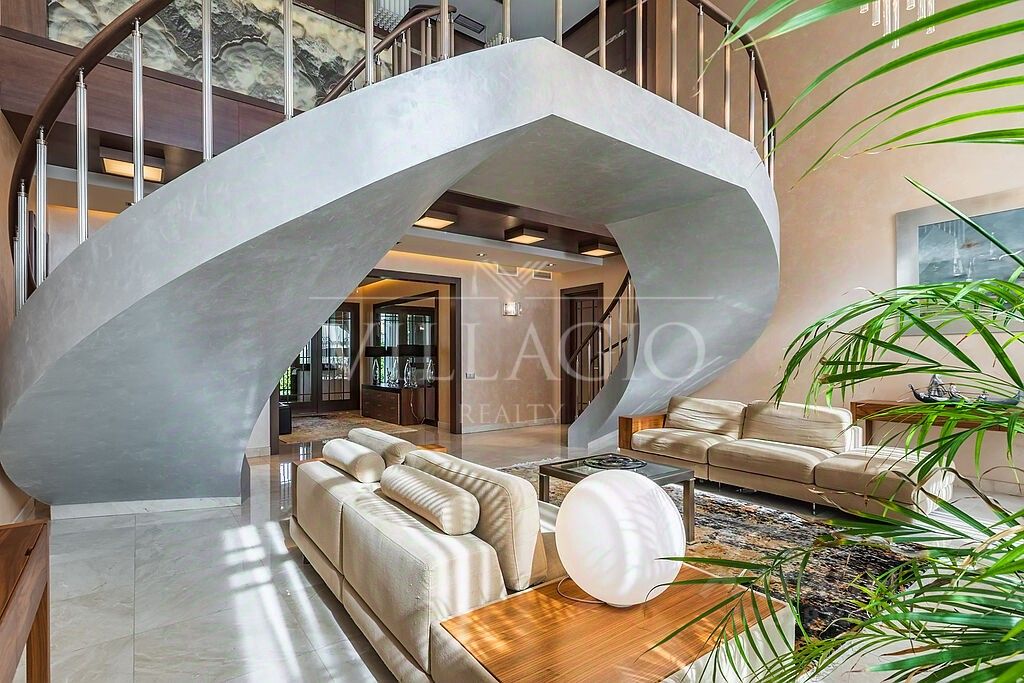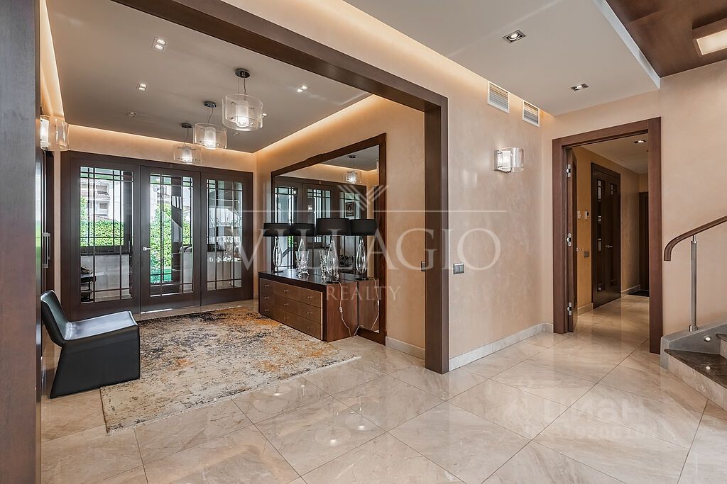 Внешняя и внутренняя отделка выполнены по индивидуальному архитектурному проекту с использованием натуральных материалов: оникс, гранит, мрамор, дерево- все гармонично дополняет эстетический облик дома. Особняк оборудован техникой и системой кондиционирования премиальных брендов, дизайнерской мебелью, а также световой и музыкальной системой ''умный дом''. В вашем распоряжении: 2 этажа с цокольными помещениями. 3 хозяйские спальни, каждая из которых имеет собственный санузел и зону с дополнительными помещениями (гардеробные, комнаты для приема гостей).