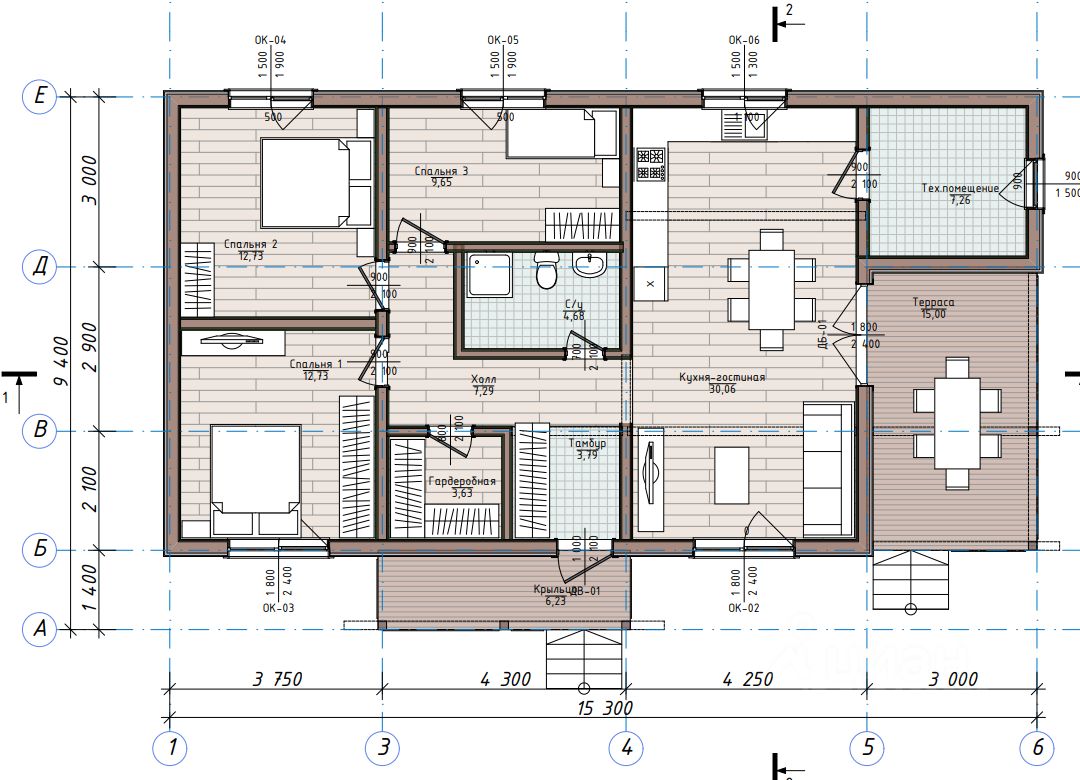 Одноэтажный дом общей площадью 130 кв.м., на земельном участке 5 соток, на котором расположены сосны! Удобную планировку: 3 спальни, просторная кухня-гостиная с выходом на террасу, с/у, техническое помещение подходящее под нормы газового оборудования, тамбур, гардеробная комната. Все плюсы загородной жизни с сохранением городского комфорта: чистый воздух, умиротворение природы, качественный сервис и заботу, инфраструктуру. Дом уже построен!